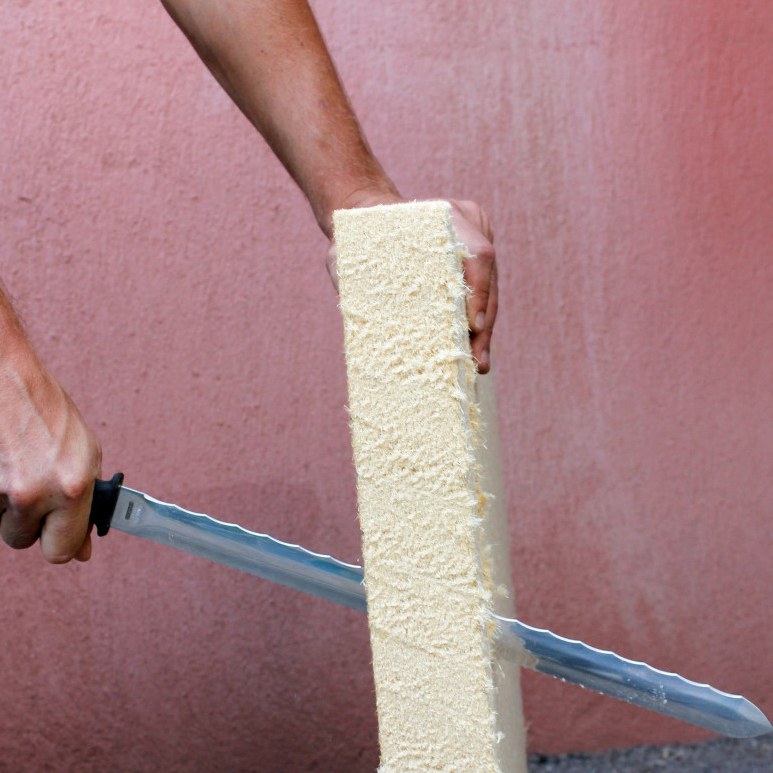 Edma isoleringskniv med kraftig klinge i rustfrit stål. 2-komponent håndtag og dobbelt slebet skær til hhv. hårde og bløde isoleringsmaterialer. Velegnet til stenuld, glasuld, træuld, hør eller cellulosevatpaneler mm. Leveres inkl. kraftig nylonskede.