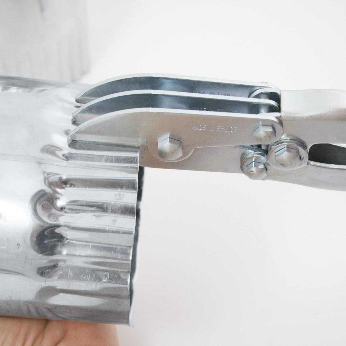 Tang til nem og enkel krympning af runde og firkantede blikrør - f.eks nedløbsrør.
