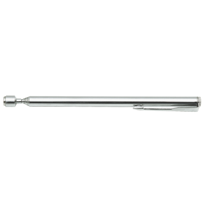 Kraftfuld teleskopmagnet med lommeclips. Praktisk til opsamling af magnetiske genstande som fx bolte og møtrikker på ufremkommelige steder.