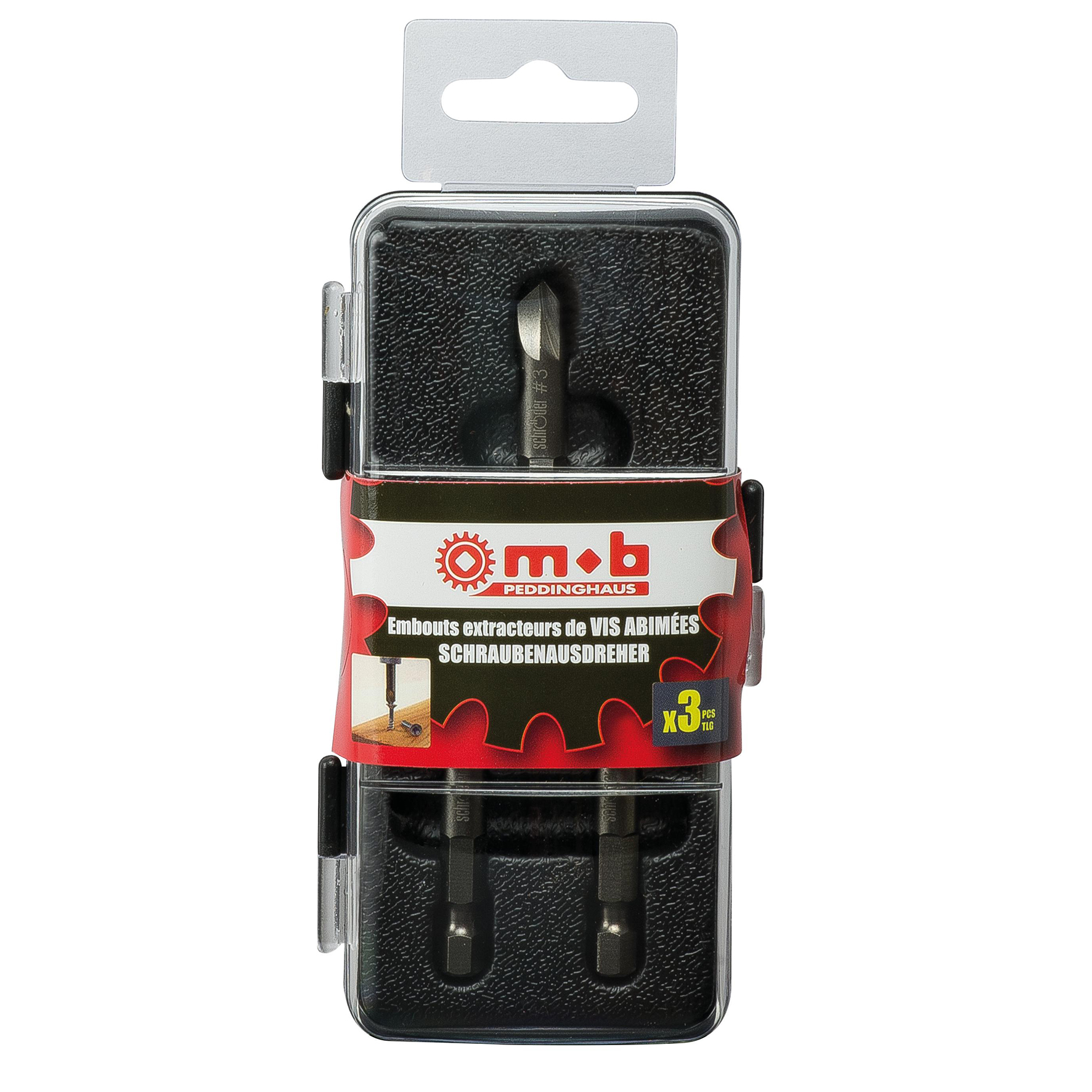 Er kærven ødelagt og derfor ikke til at få skruen ud igen - er dette nye og smarte sæt fra Peddinghaus løsningen! Sæt blot passende størrelse udtrækker-bit i skruemaskinen og kør langsomt baglæns.Kan bruges til skruer med PH, PZ, Torx, 6-kant eller lige kærv.