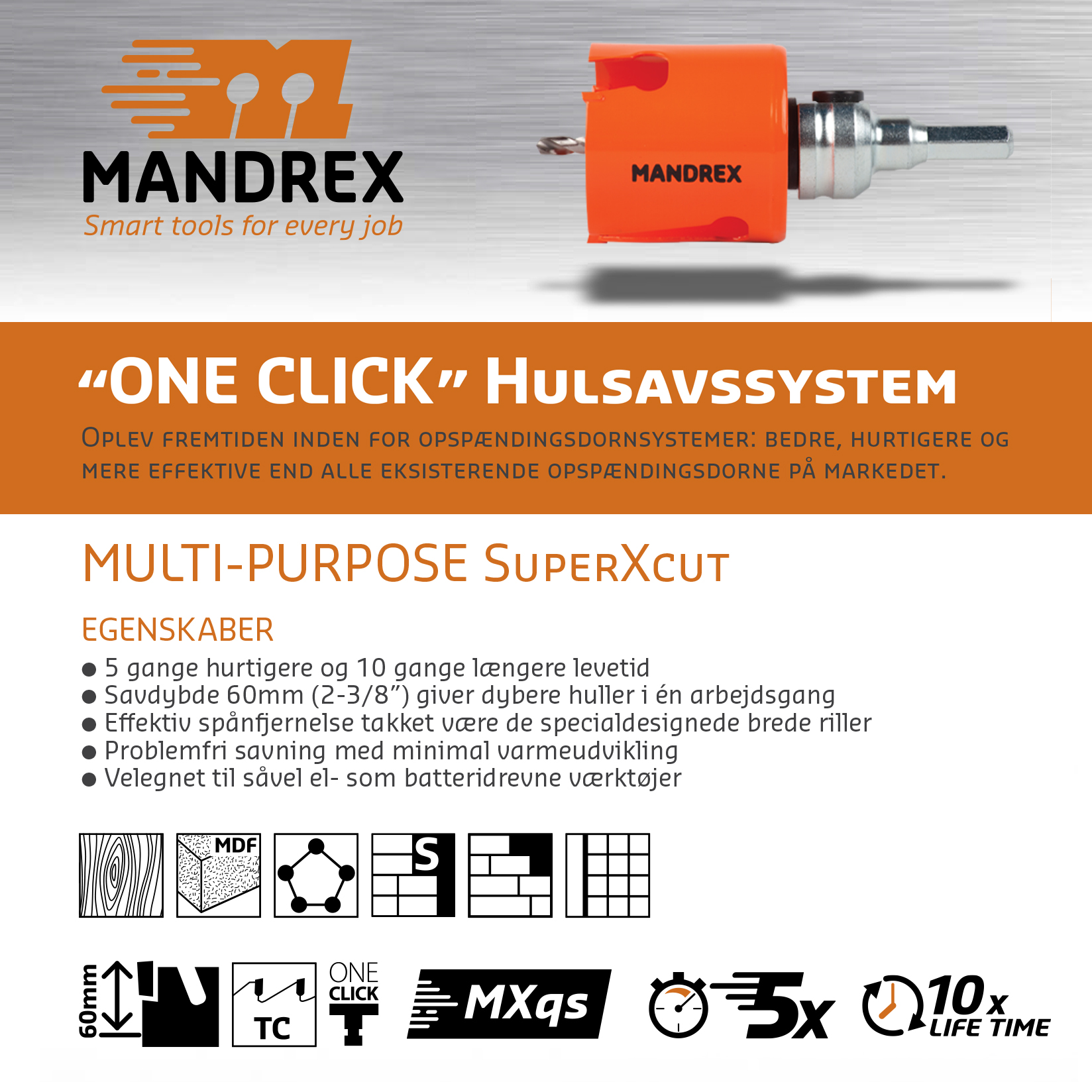 MANDREX MXqs OneClick holder 11 mm HSS centrerbor - 2036626 MX200020B Multifunktionelt holder til hårdmetal hulsave. Med hårdmetal styrebor til. Træ, plast, stål & rustfrit stål L = 125mm Ø7mm 418,00 DKK (ekskl. moms) Vis produkt