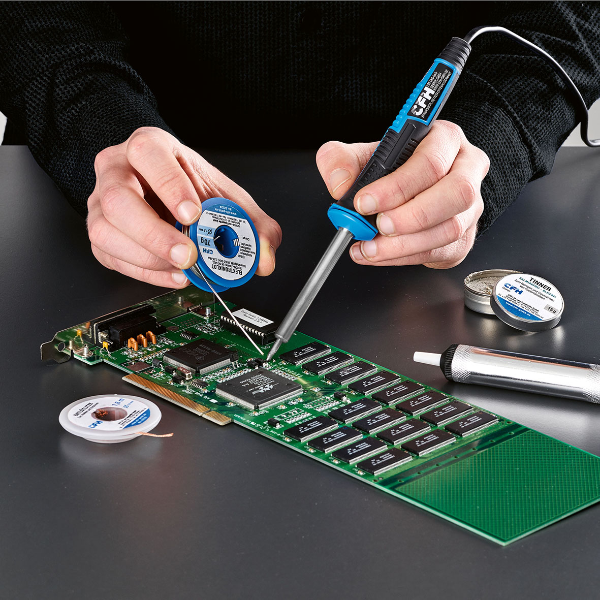 Til opsugning af smeltet tin, perfekt når man har brug for at løsne fastloddede komponenter.