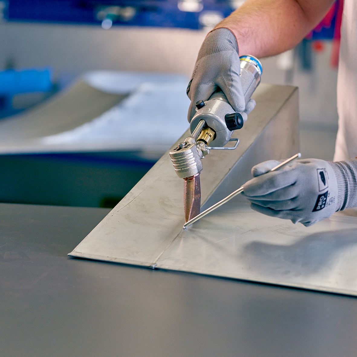 CFH gasloddekolbe PL 932 med piezotænding. Ingen slanger og store gasflasker. Smart mobil loddekolbe, velegnet til plade- og VVS-arbejde samt reparationer. Leveres inkl. 235 g. kobber-loddebolt samt CFH HighPower gasdåse SG 105. Komplet klar til brug.
