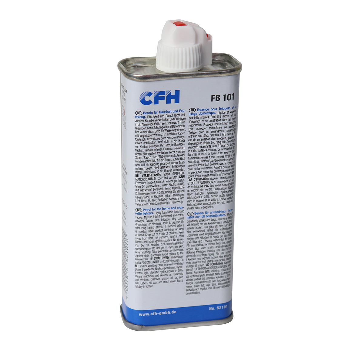 Til påfyldning af benzin lightere eller til rengøring og opløsning af f.eks oile, fedt, voks m.m.