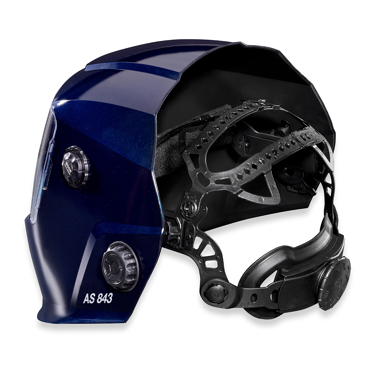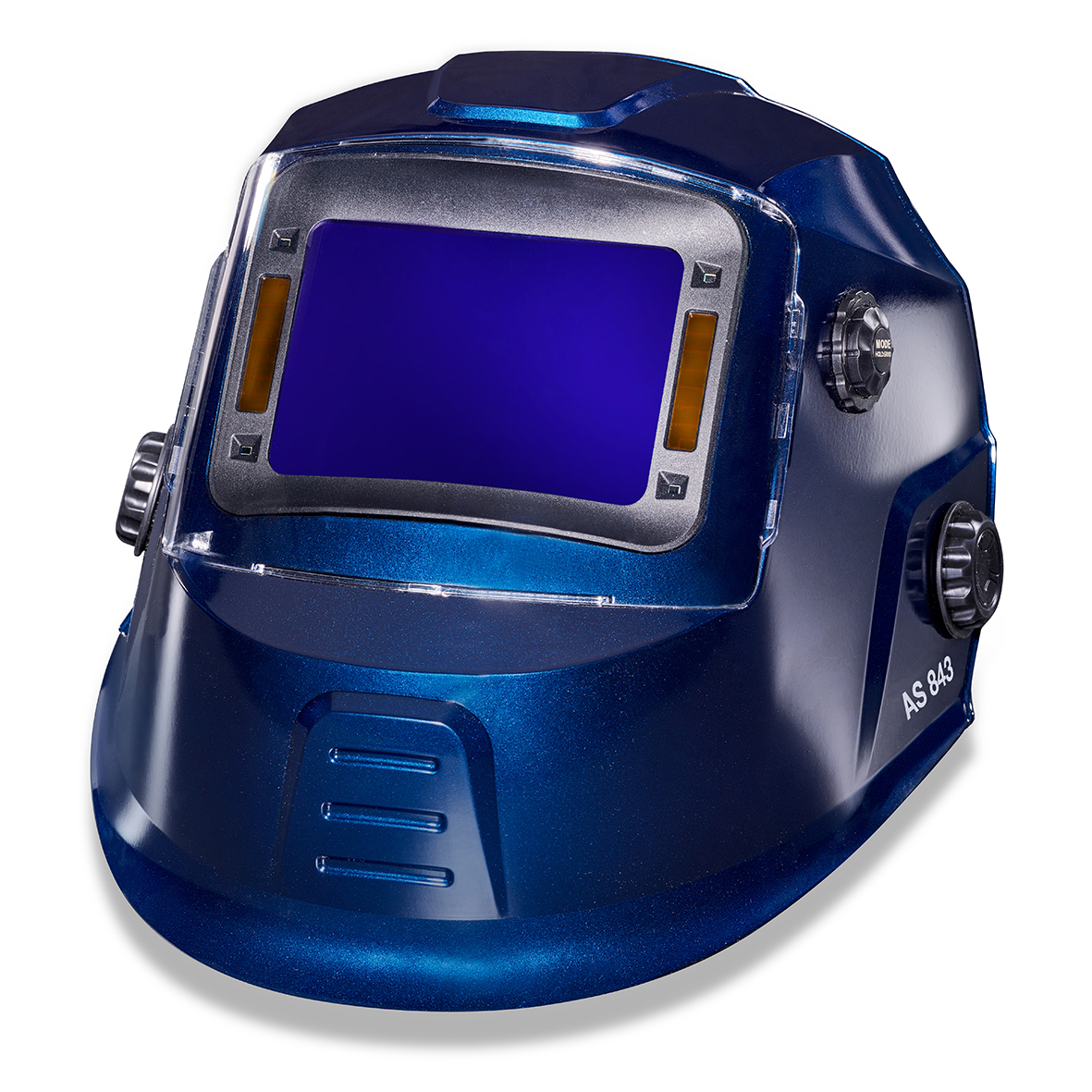 CFH automatisk svejsehjelm AS843 til let industri, håndværk og hobby. Robust og pålidelig svejsehjelm med høj sikkerhed, komfort og mange justeringsmuligheder. Hjelmen beskytter øjne og ansigt mod stråling, varme og gnister, og kan justeres afhængigt af, hvem der skal bruge den. Med justerbar følsomhed, forsinkelse og mørkhedsgrad DIN 9-13. Synsfelt på 108x74 mm. Drives af solceller.