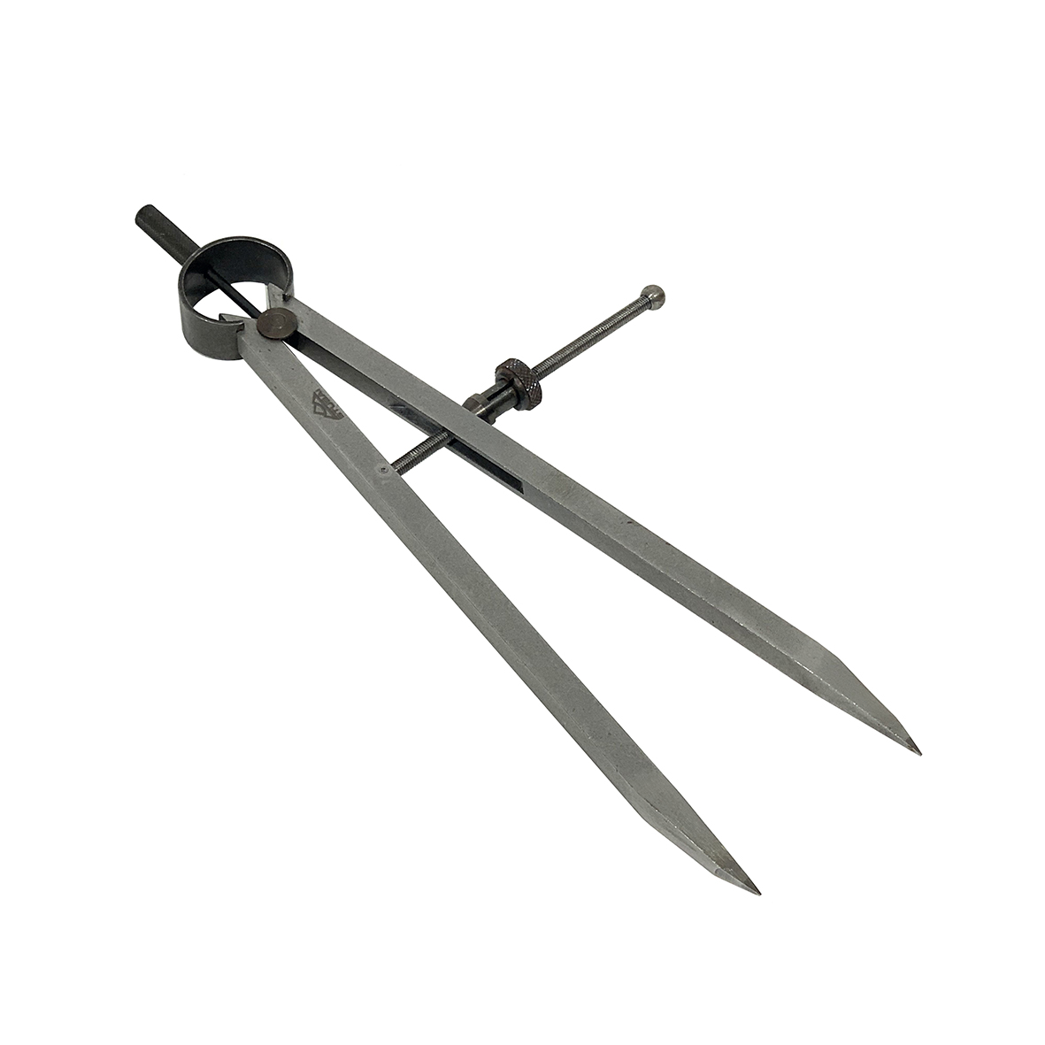 Stikpasser med hærdede spidser samt gennemgående spindel med fjederskrue.
