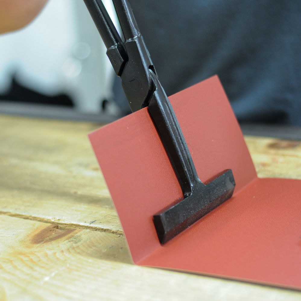 Sænksmedet dæktang (falstang) med gennemstukket led, hærdede kæber og let afrundede kanter.