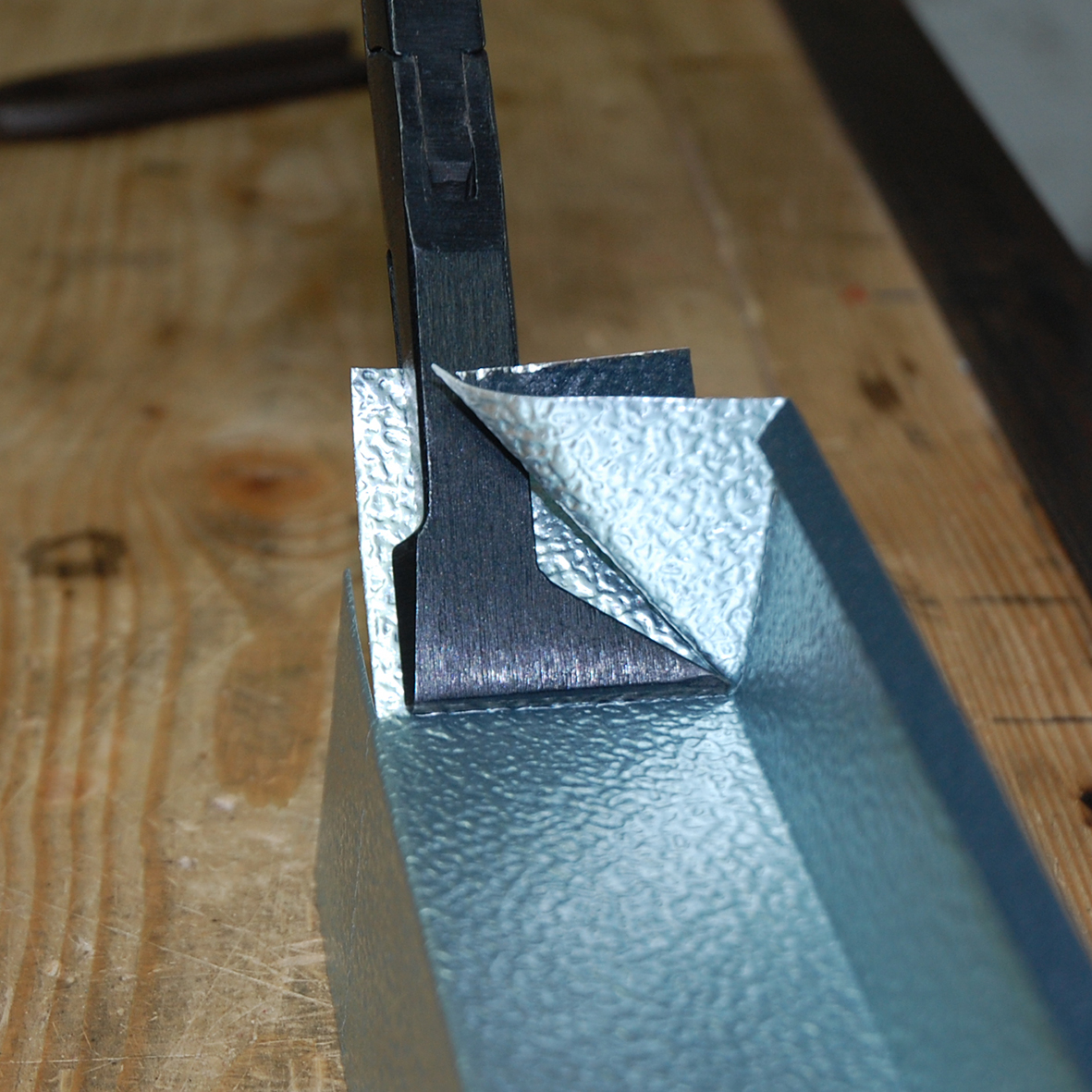 Sænksmedet ensidet paraplyfalstang med langt indstik på 80 mm, gennemstukket led, hærdede kæber og let afrundede kanter.