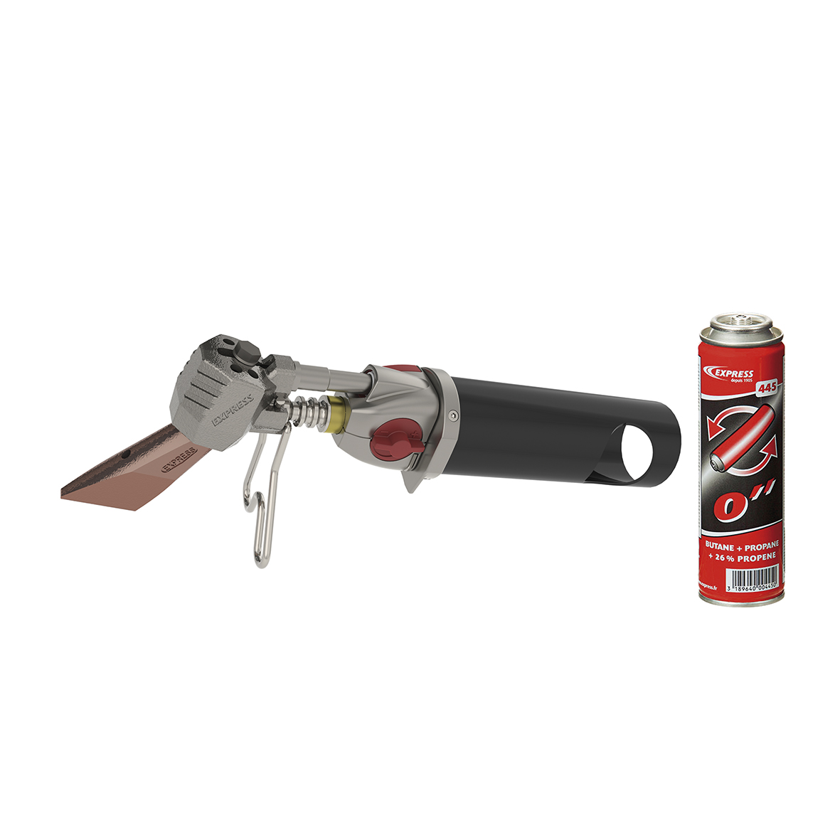 Freund/Express gasloddekolbe med piezotænding. Ingen slanger og store gasflasker. Smart mobil loddekolbe, velegnet til plade- og VVS-arbejde samt reparationer.Leveres inkl. 236 g. kobber-loddebolt samt gasdåse powergas 445 / 110 ml. Komplet klar til brug.
