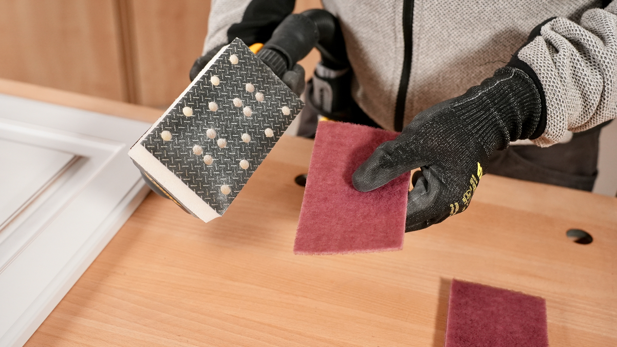 Mirlon Total-strimler inkluderet: Fem Mirlon Total® VF 360 slibestrimler til effektiv overfladebehandling.