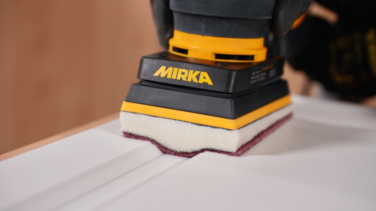 Mirlon Total-strimler inkluderet: Fem Mirlon Total® VF 360 slibestrimler til effektiv overfladebehandling.
