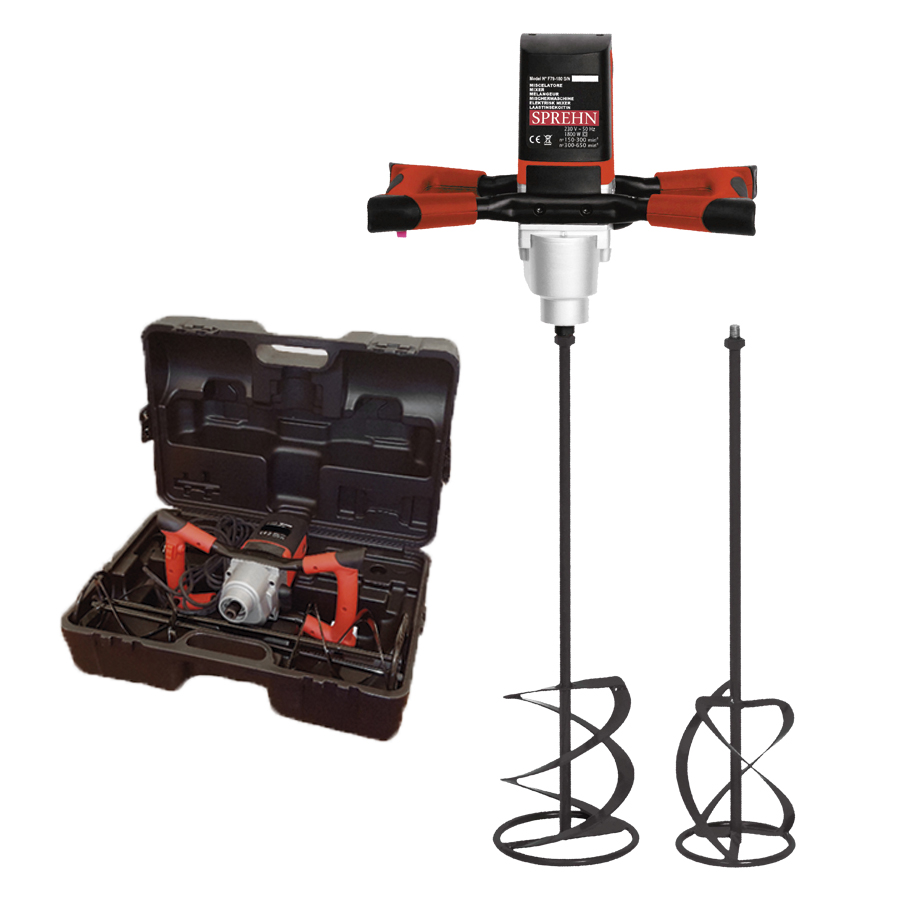 Nem og behagelig at bruge. Denne maskine gør det let at blande og røre i materialer som gips, mørtel, maling, lim og meget mere. Leveres i praktisk kuffert.