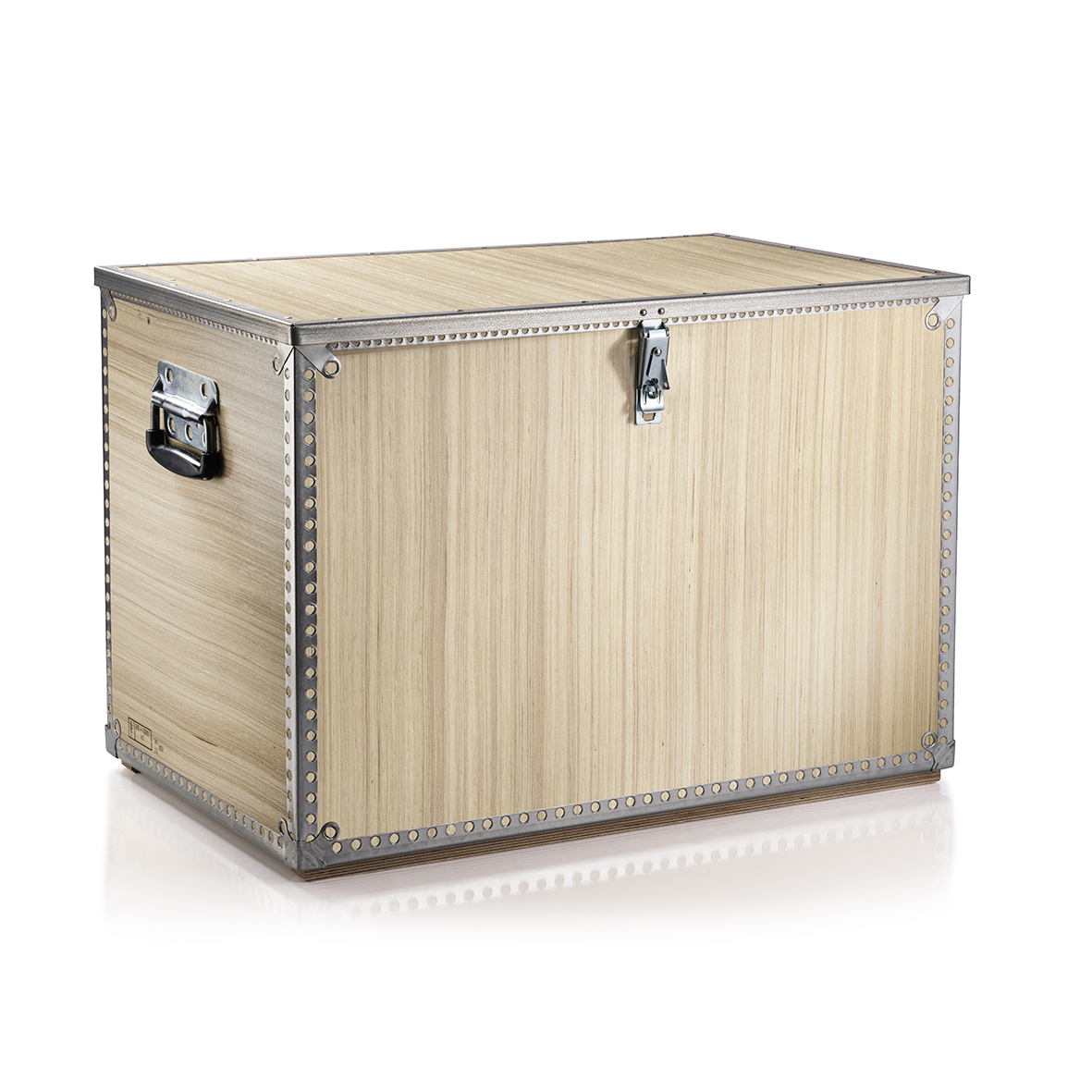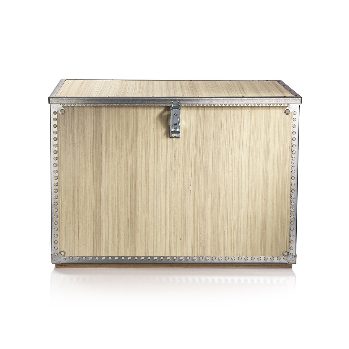 Produceret i birkekrydsfiner af høj kvalitet, med galvaniseret metal hængsler, kanter og hjørner.