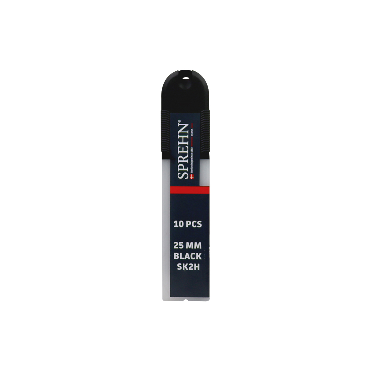 Sprehn bræk af knivblad 25mm black. Højkvalitets knivblad udført i SK2H stål. Leveres i 10-pak