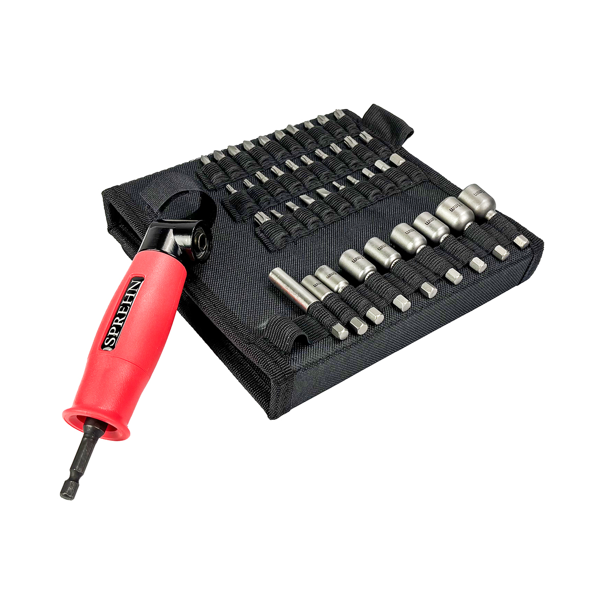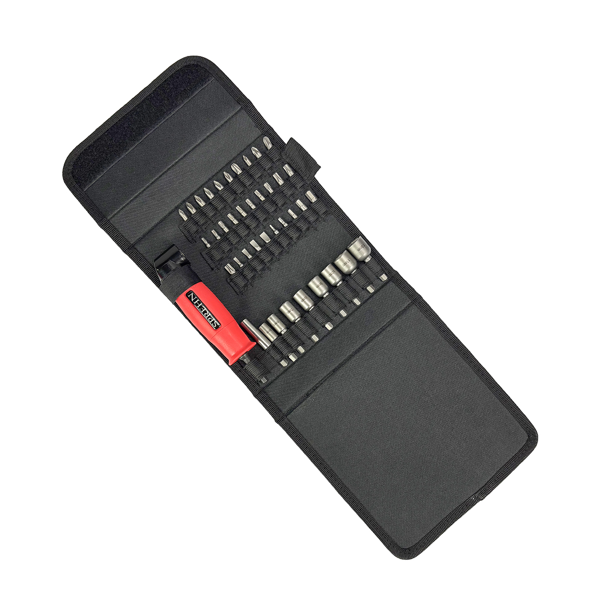 Bitssættet har følgende indhold:25mm bits:1 x PH1 – 5 x PH2 – 1 x PH31 x PZ1 – 1 x PZ2 – 1 x PZ31 x TX10 – 1 x TX15 – 5 x TX20 – 1 x TX25 – 2 x TX30 - 1 x TX401 x SL3 – 1 x SL4 – 1 xSL5 – 1 x SL61 x HEX2 – 1 x HEX3 – 1 x HEX4 – 1 x HEX5 – 1 x HEX6Magnettoppe – 1 x 5mm – 1 x 6mm – 1 x 7mm – 1 x 8mm – 1 x 9mm – 1 x 10mm – 1 x 11mm – 1 x 13mm1 bitsholder 60mm1 Vinkelbitholder