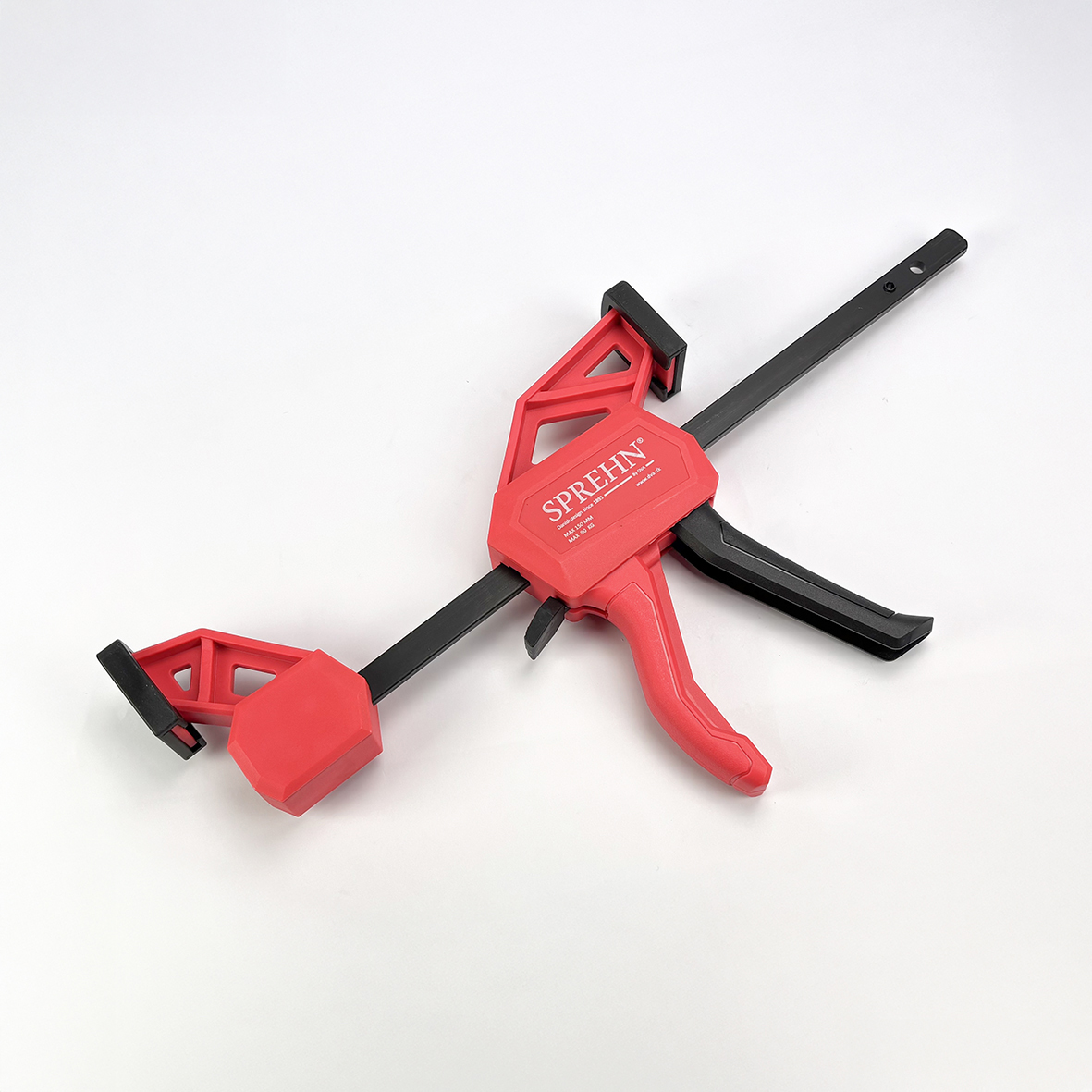 Forstærket nylon og induktionshærdet stålskinne sikrer høj styrke og lang holdbarhed. Kæbe kan vendes uden brug af værktøj, så tvingen også kan anvendes som spredetvinge. Aftagelige, bløde kæbepuder beskytter arbejdsemnet og forhindrer mærker.