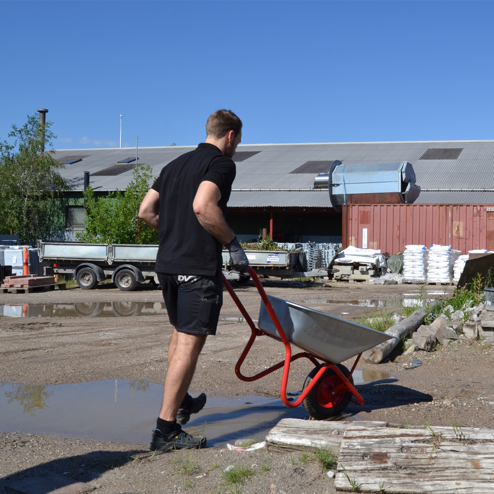 Mørtelbør med luftgummi hjul og ekstra stærk galvaniseret balje samt pulverlakeret stel.