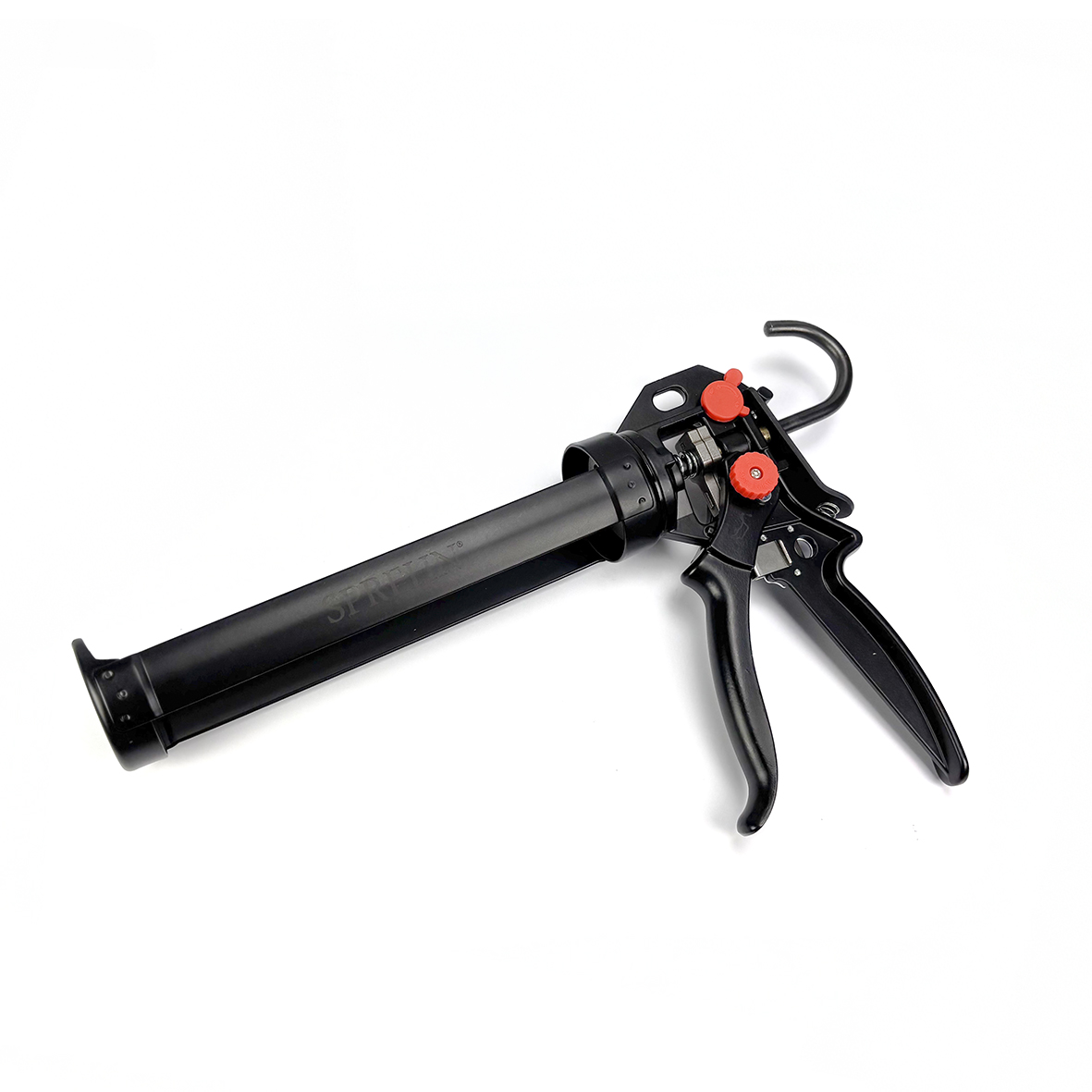 Sprehn plusline fugepistol til 310ml patroner. Pistolen har en panteret omskifter for trykstyrken, hvilket giver mulighed for at skifte imellem udveksling 12:1 eller 25:1. Dette giver muligheden for at have den optimale tryk hvad enten man arbejder med bløde acryl fuger eller hårde montagelime. Pistolen har også stilbart drypstop og afklipper for fugespids.