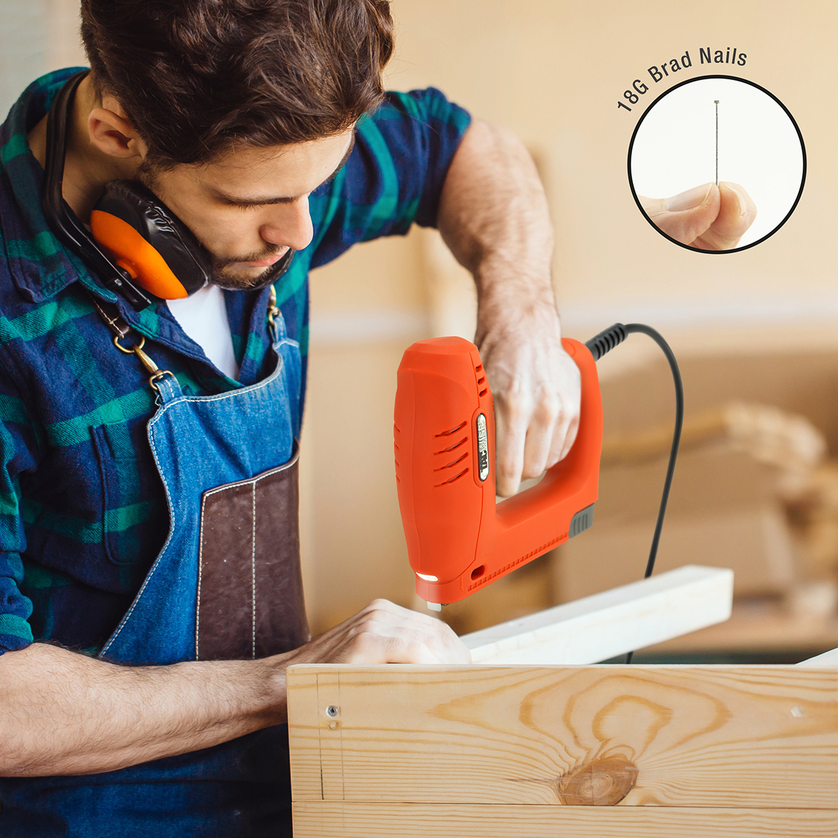 SEMI-PROFESSIONEL 2-I-1 hæfte/sømpistol – Hæfte- og sømpistol med ledning leveres med 5000 x type 140 / 8 mm hæfteklammer og 2000 x type 18G / 14 mm søm, designet til at give komfort og pålidelighed til kontinuerlige hæfteopgaver