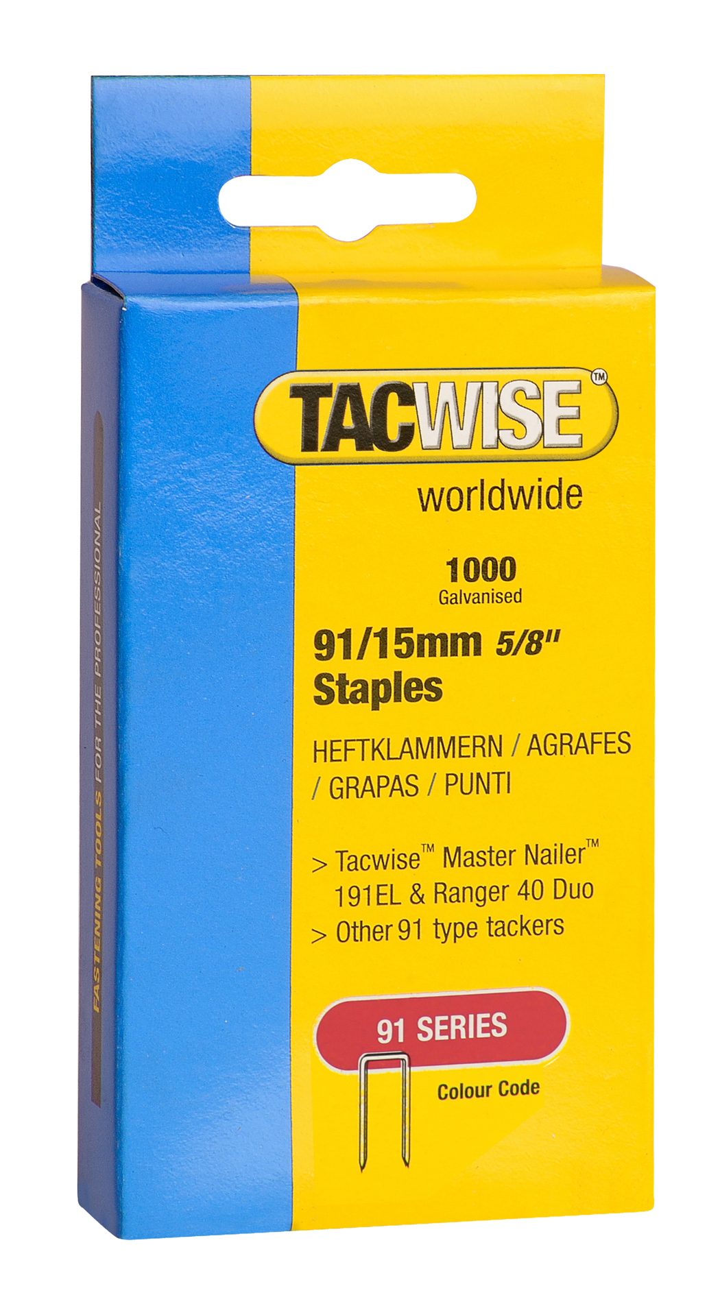 Tacwise 91 / 15mm Smalle Crown-hæfteklammer - Kompatibel med 191EL elektrisk tacker og Duo 35