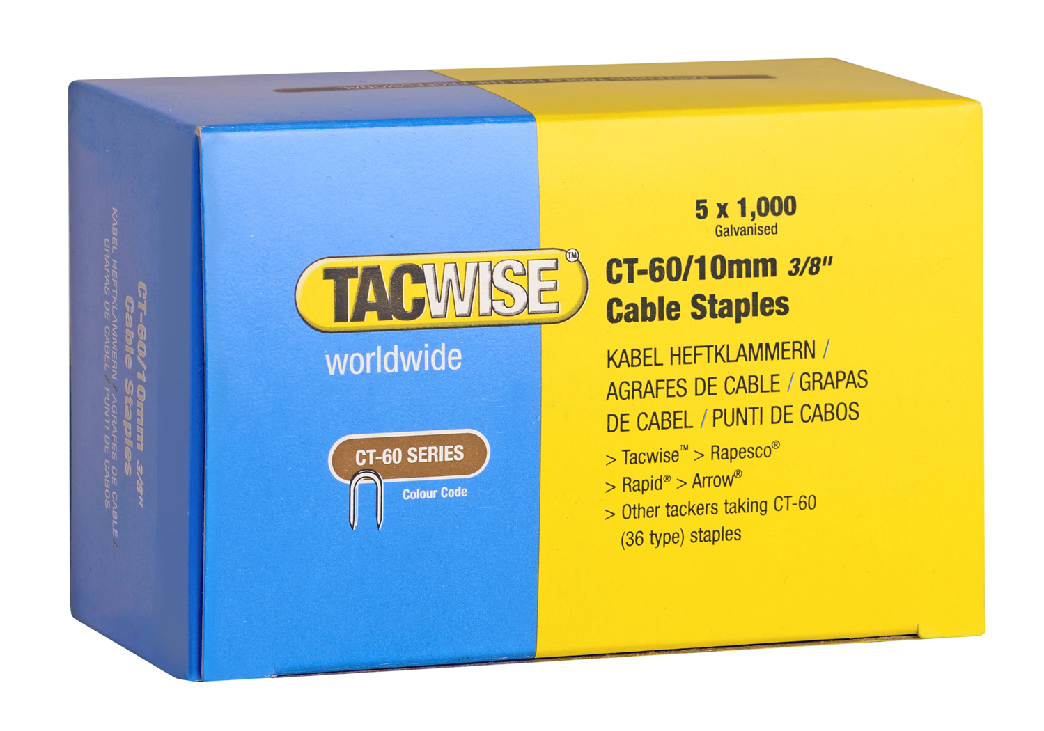 Tacwise CT-60 / 10mm Divergent Point Galvaniseret (5x1000) - Kompatibel med Z3-CT60, CT60 kabel tackere og Combi Cable Tacker