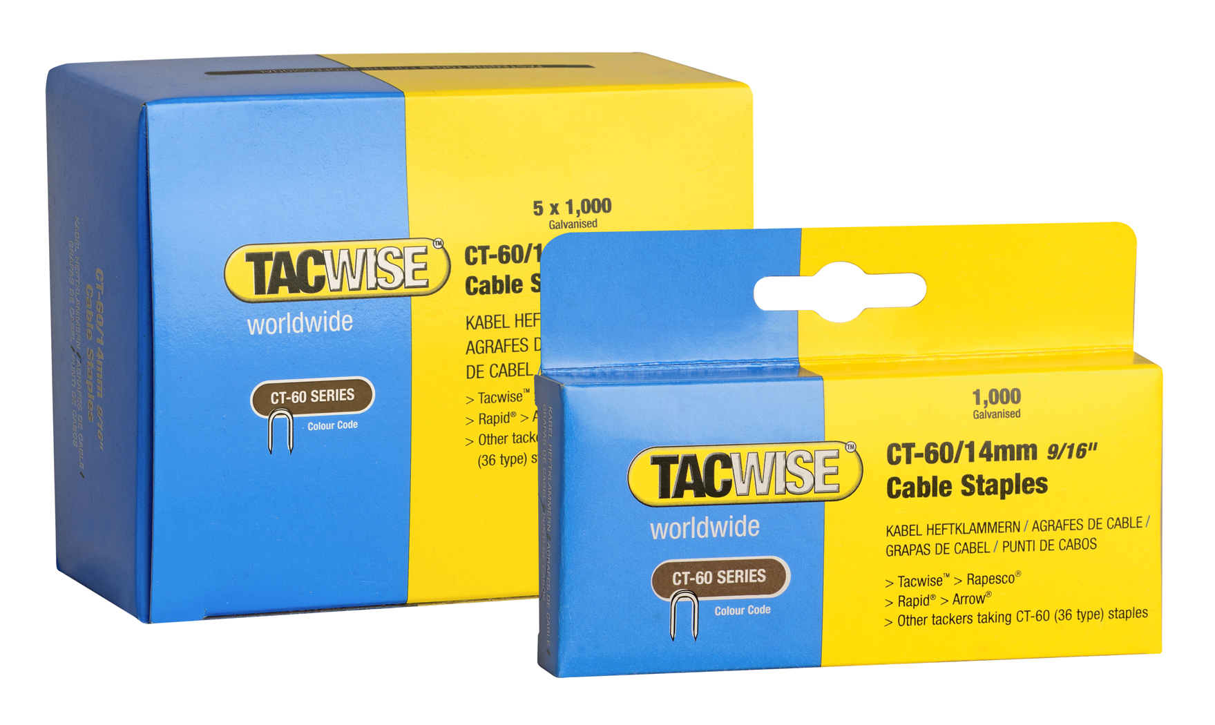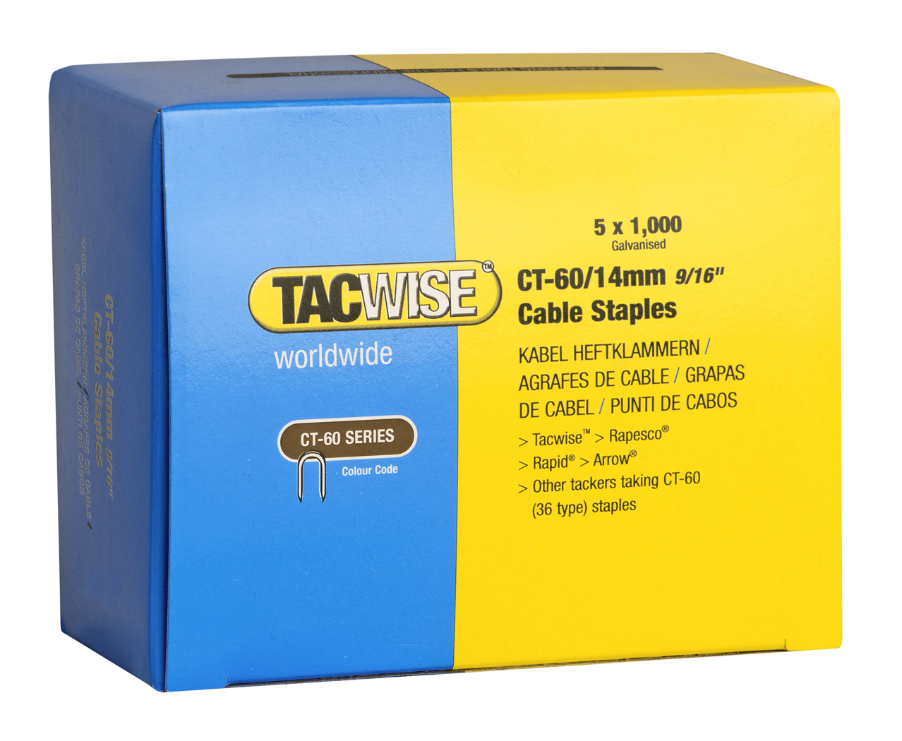 Tacwise CT-60 / 14mm Divergent Point Galvaniseret (5x1000) - Kompatibel med Z3-CT60, CT60 kabel tackere og Combi Cable Tacker