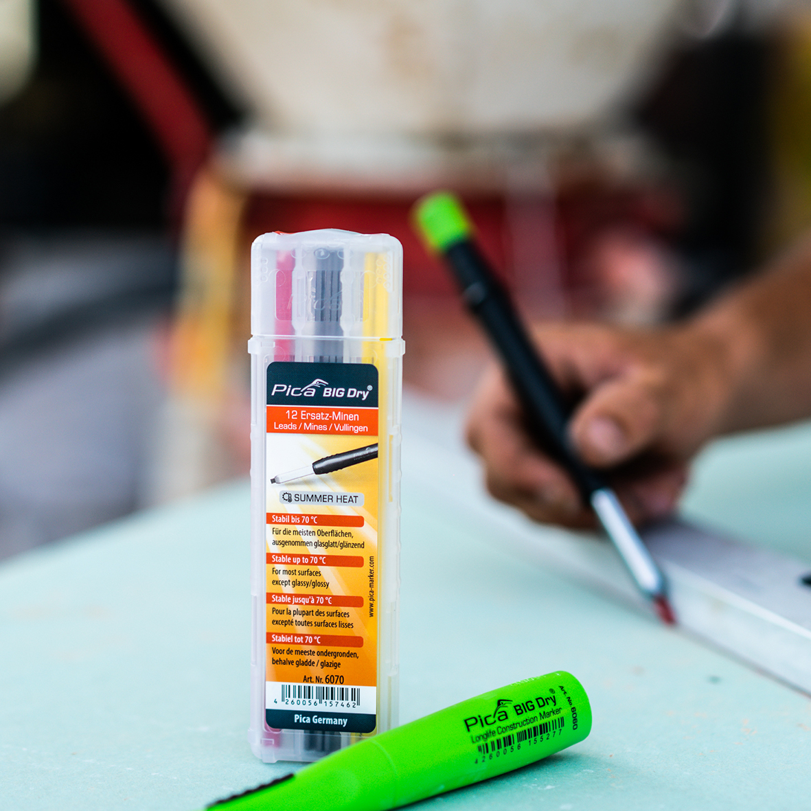 PICA BIG blyanten er den professionelle løsning for den bruger der kræver et flexibelt, holdbart markeringsværktøj. Med det brede Sortiment af stifter kan der markeres på alle typer underlag samt alle farver.