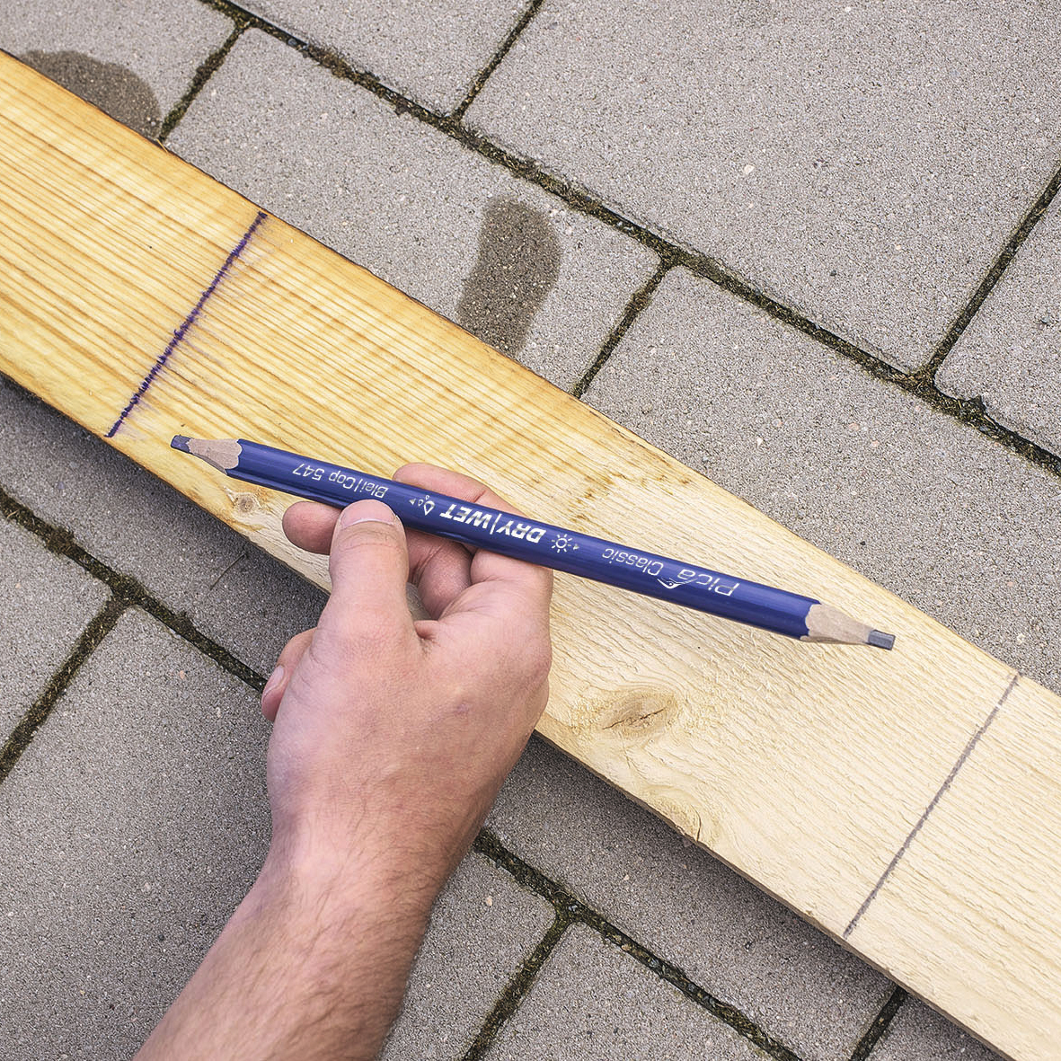 Tømrerblyant særligt velegnet til at skriver på både våde og tørre underlag.