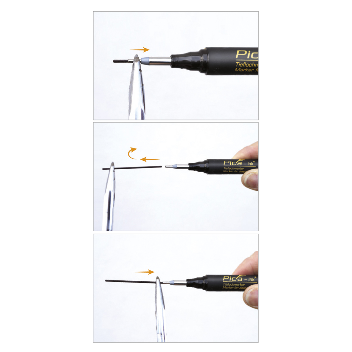 Den originale Pica Ink dybhulsmarker sikrer præcis og holdbar mærkning – selv på svært tilgængelige steder. Den ekstra smalle og lange spids gør det nemt at markere gennem huller, smalle revner og andre udfordrende områder.