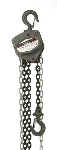 Håndkædetalje med kædering for hejs og sænkning. Denne håndkædetalje kan betjenes fra bunden af hejse-systemet og er derfor egnet til hejs fra gulv til loft. Taljen er udstyret med 2 lukkede stålkroge.