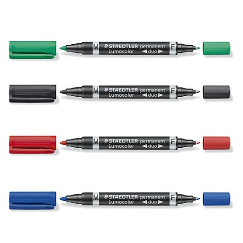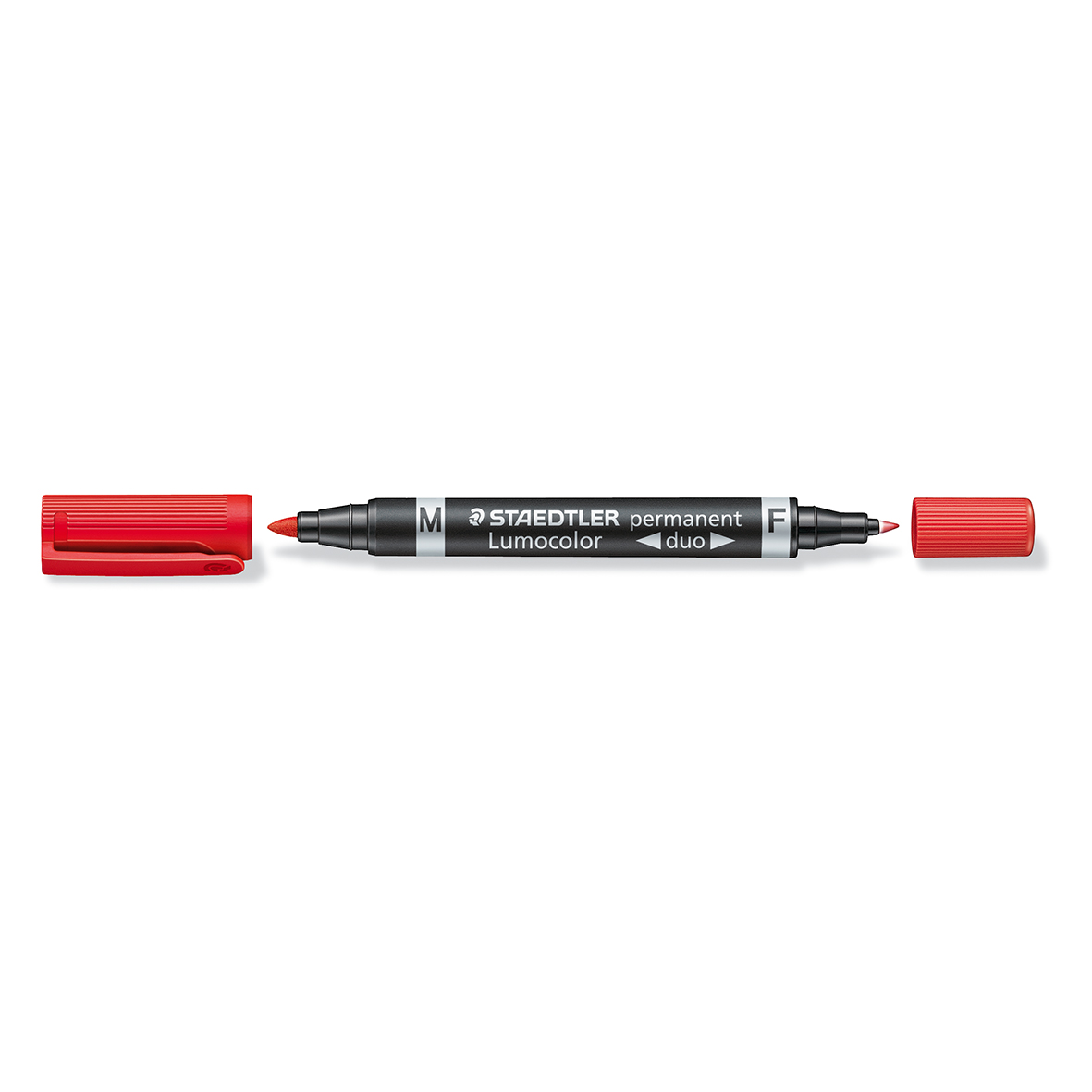 Permanent Duo marker med to spidser til skrivning og mærkning på stort set alle overflader. Markeren kan anvendes på plast, metal, træ, tape, karton og meget andet. Blækket er smudsafvisende og vandfast, og det tørrer på få sekunder, hvilket er ideelt til venstrehåndede brugere. Farven er intensiv og lugten er minimal. DRY SAFE blæk gør, at den kan ligge uden hætte i dagevis uden udtørring. Xylen- og toluen fri blæk. Genopfyldes. Stregbredde (F) 0,6 mm og (M) 1,5 mm.