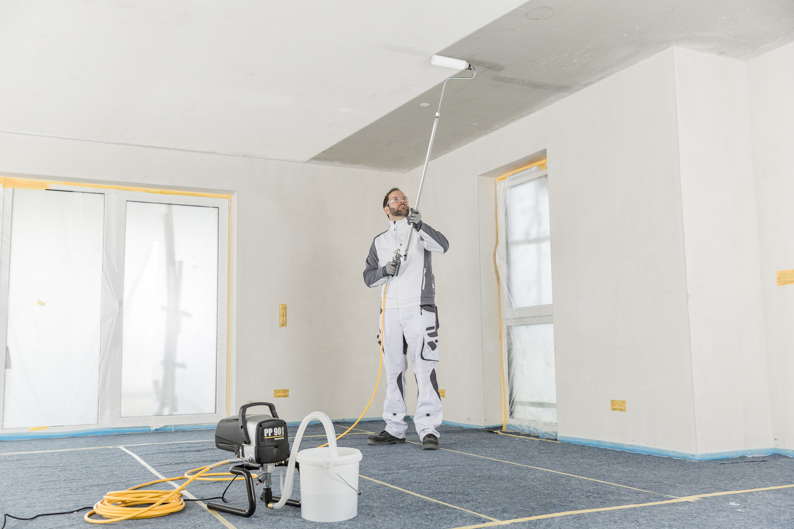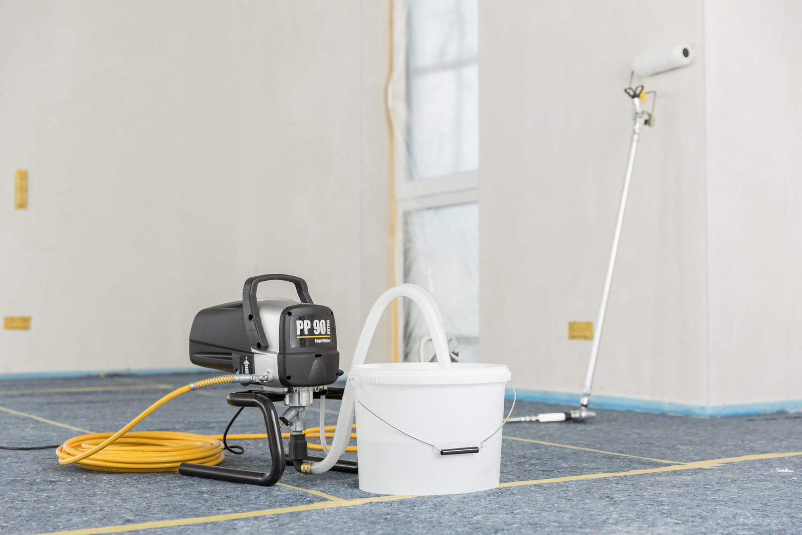 POWERPAINTER 90 EXTRA SPRAYPACK på bæreramme er praktisk: Højdejusterbart teleskophåndtag for nem transport på byggepladsen og pladsbesparende opbevaring. Den har et manometer: Gør det muligt at regulere trykket, så det passer til det aktuelle sprøjtemateriale. Innovativ HEA-dyseteknologi: To dyseboringer direkte efter hinanden sikrer et perfekt sprøjtebillede - også i de lave trykområder - kombineret med et højt materialeflow. Derudover, har den en ventiludløser: Sikrer høj driftsikkerhedog let brug. Et tryk med tommelfingeren og indgangsventil er fri igen.