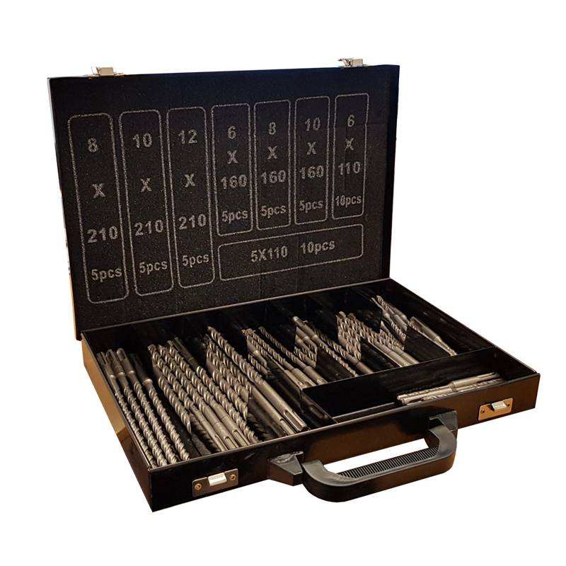 SDS PLUS 2-skær HammerborsætSkær længde: 95-142 mmSpids vinkel: 50-52 graderMateriale: 40Cr & YG8C Tungsten CarbidValset udførelse