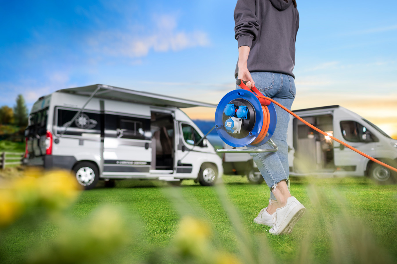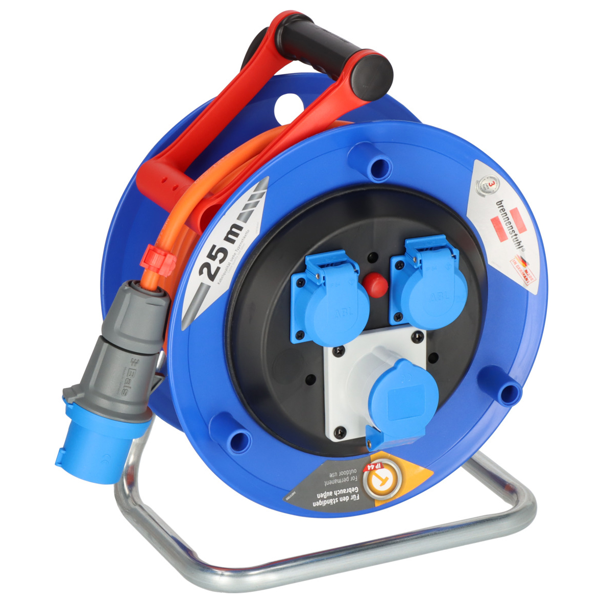 BRENNENSTUHL kabeltromle for Camping og båd. Tromlen har 25 mtr kabel, for nem strømforsyning til campingvogn/båd. Er udført med kraftigt 3x2,5mm² kabel med CEE stik.