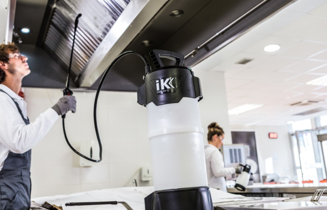IK Foam Pro 12 giver brugeren et tæt, permanent skum, der er ideelt til professionelt rengørings-, sanitets- og desinfektionsarbejde, rengøring af VVS-systemer, bilvask og detaljering samt til desinfektion af fødevareforarbejdningsområder og industrikøkkener.