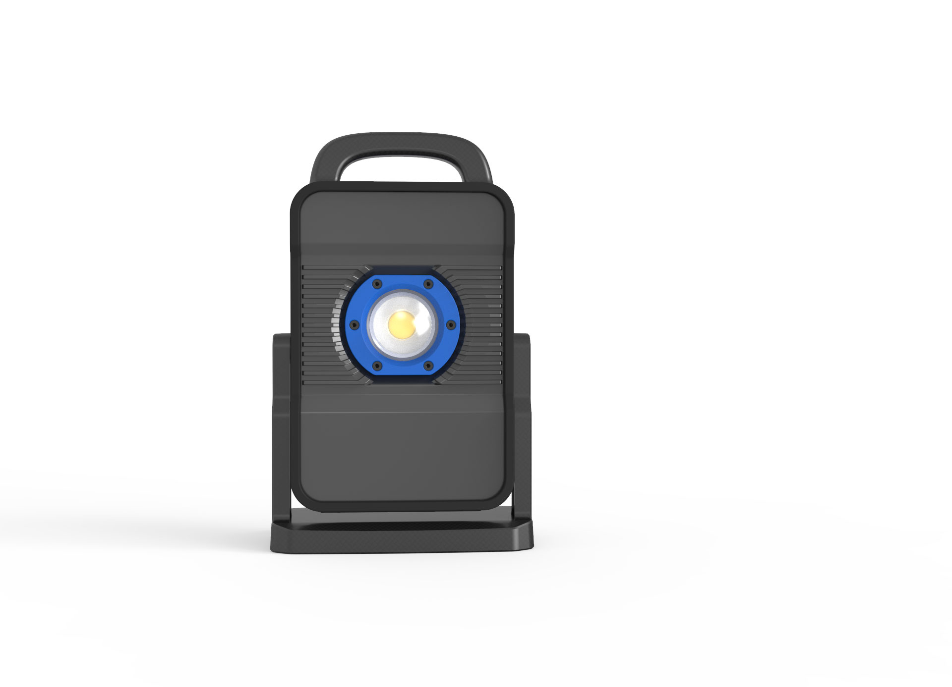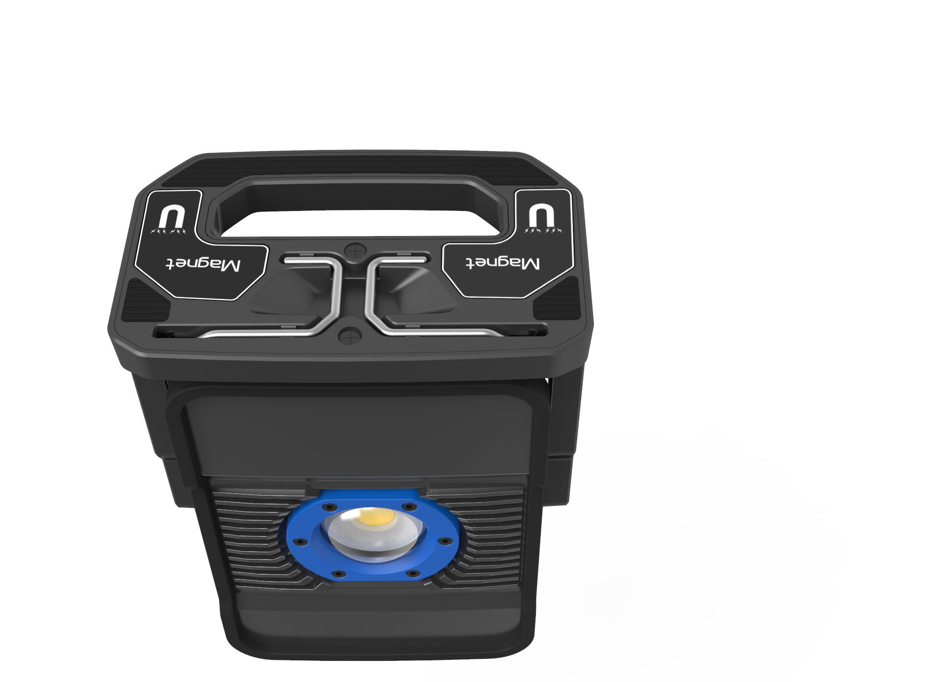 Kompakt og effektiv LED arbejdslampe i lækkert design. Lampen er udført i aluminium for optimal varmeafledning og beskyttet med en slagfast gummikappe. Den monteres nemt med indbyggede magneter eller ophængskroge og kan anvendes næsten overalt takket være det kompakte format. Lampen har tre lysindstillinger (25/50/100 %) og er udstyret med USB-udtag til opladning af elektroniske enheder. Kompatibel med powertool-batterier på 14,4V og 18V fra Dewalt, Milwaukee og Metabo.