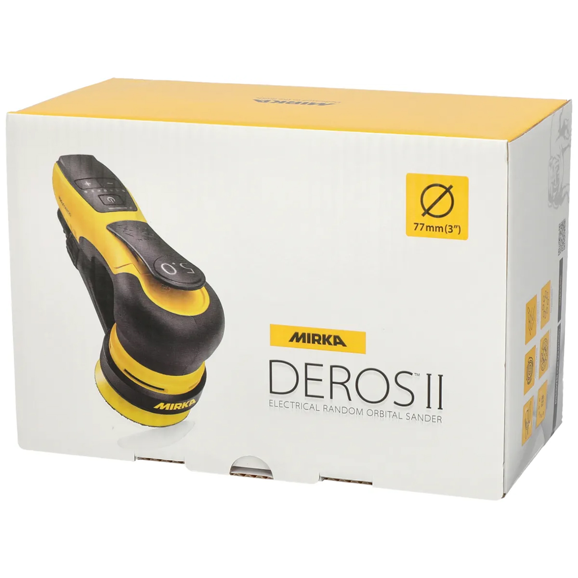 Mirka® DEROS II 325 er en 77 mm direkte elektrisk excentersliber, der er udviklet specielt til mindre slibeopgaver, såsom små reparationer, restaurering af forlygter, slibning af kofangere, svært tilgængelige områder og renovering af køkkener. Den er også velegnet til korrektioner på faste overflader og detaljer på møbler. Mirka DEROS II 325 har en 77 mm sål og 2,5 mm udsving, der er velegnet til finere slikbning og slibning inden polering.