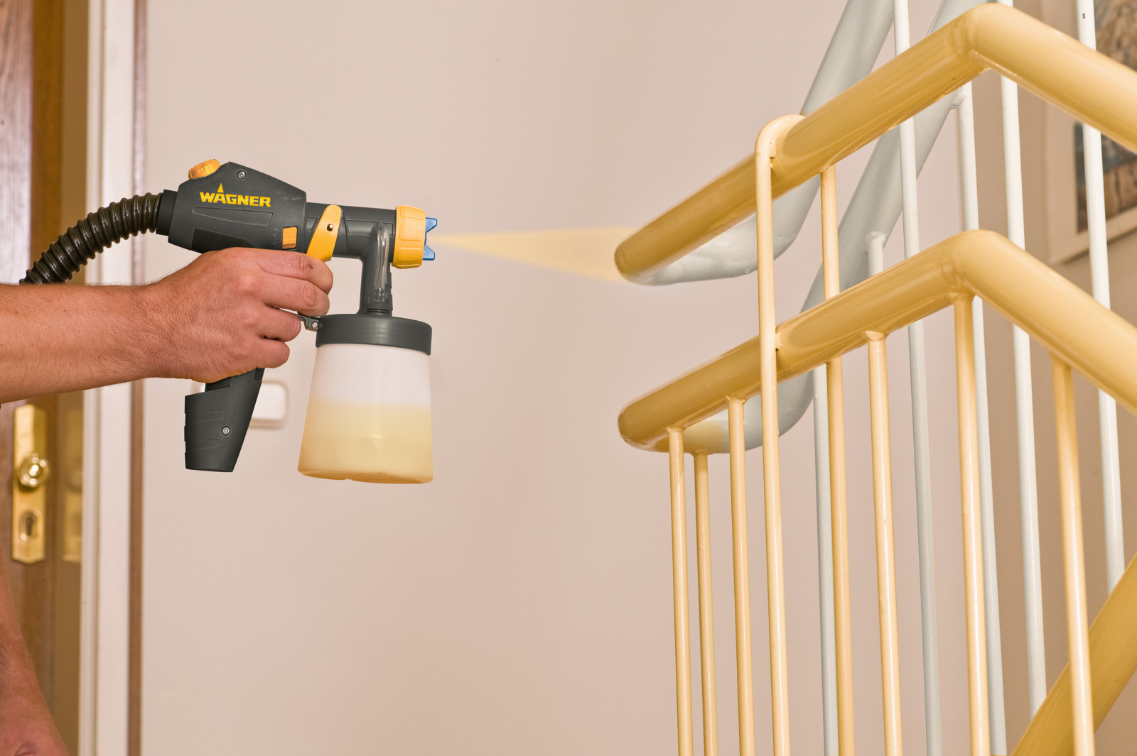 Wagner W150 er en sprøjtepistol til påføring af maling. Modellen W150 er specielt designet til træ- og metaloverflader og er en del af Wagners serie af sprøjtepistoler til træ og metal. Den anvendes typisk til forskellige maleropgaver såsom bejdsning, lakering og maling af træ- og metaloverflader, herunder møbler, døre, skabe, hegn mv.Wagner W150 sprøjtepistolen har HVLP design, der reducerer overspray og giver et kontrolleret og ensartet sprøjtemønster. Den har også justerbar kontrol for mængden af maling, sprøjteviftens bredde og lufttrykket, hvilket muliggør tilpasning baseret på det konkrete malerprojekt og de ønskede resultater. W150 er således velegnet til gør-det-selv-entusiaster, husejere og professionelle malere.