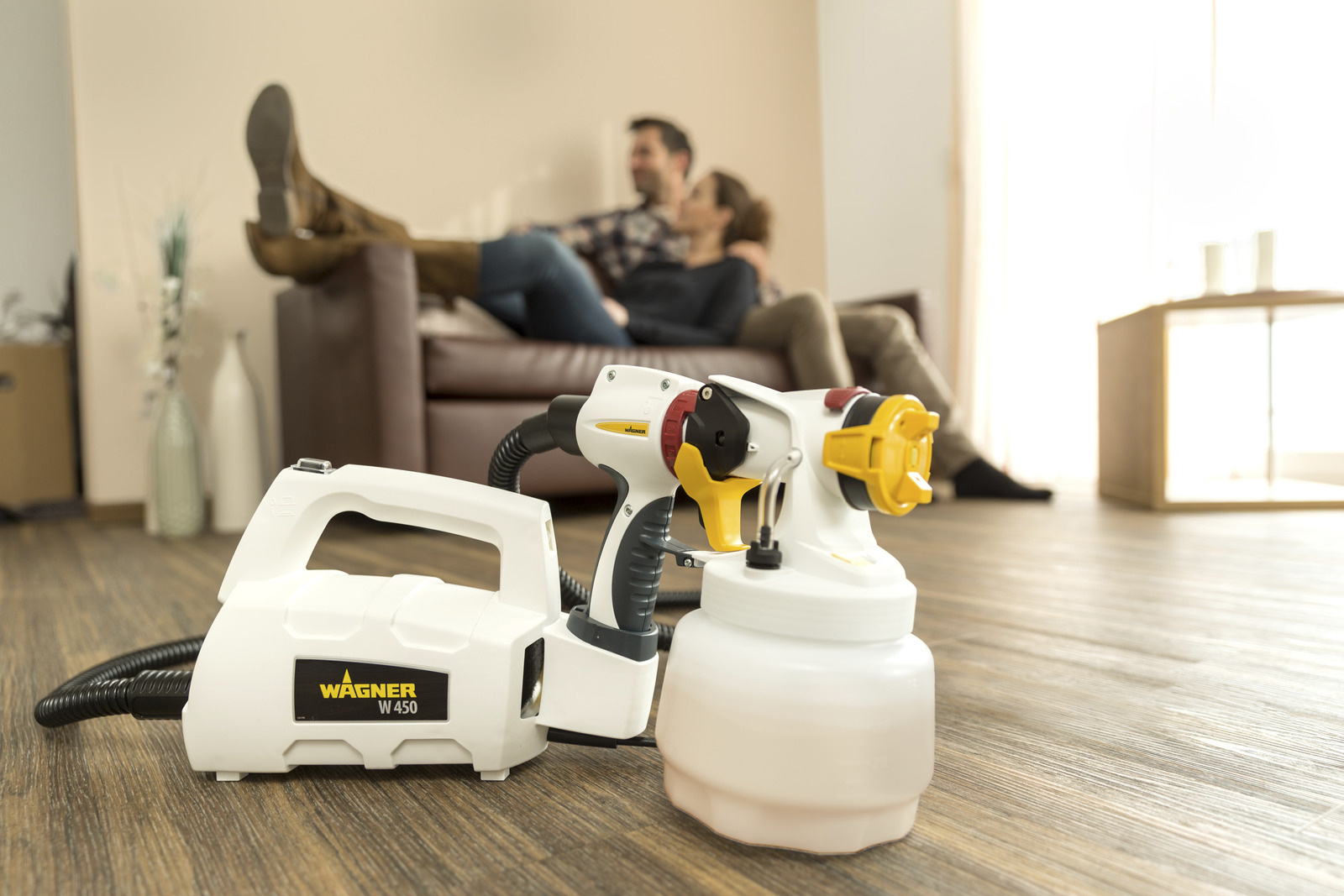 Med sprøjtemalesystemet til vægmaling W 450 set behøver du ikke længere at leve med gulnede vægge og mørke hjørner – nu kan du hurtigt sprøjtemale dem i en ny og frisk farve. Med W 450 kan du hurtigt og nemt male vægge og ved samme lejlighed hjørner og kanter, så du slipper for tidskrævende grunding. Skal påføringen af maling rundt om vinduer og døre være særlig præcis? Det er ikke noget problem, for du kan trinløst regulere farvemængden og tilpasse den til det objekt, du er i gang med at male. Den patenterede I-Spray dyse sikrer meget fin forstøvning, så du med kun en enkelt påføring, på kort tid får et jævnt dækkende lag og et perfekt resultat. Når arbejdet er slut, er rengøringen overstået på få minutter: Klik den forreste sprøjtepistol af, rengør den, og så er du færdig!