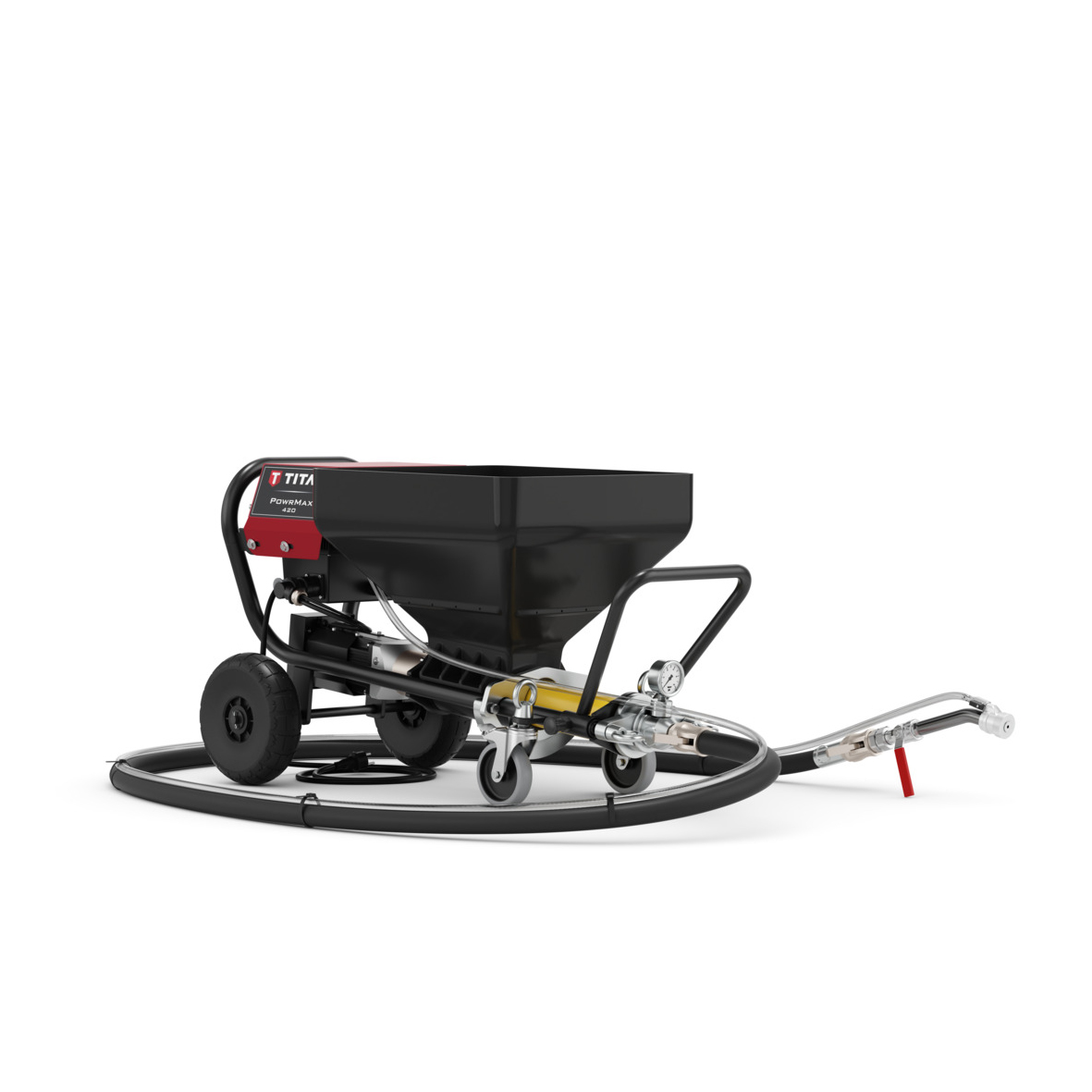PowrMax 420 er en kraftfuld, kompakt og alsidig enhed. Enheden er perfekt til forskellige byggeopgaver som Sprøjtepuds, Sprøjtespartel osv.
