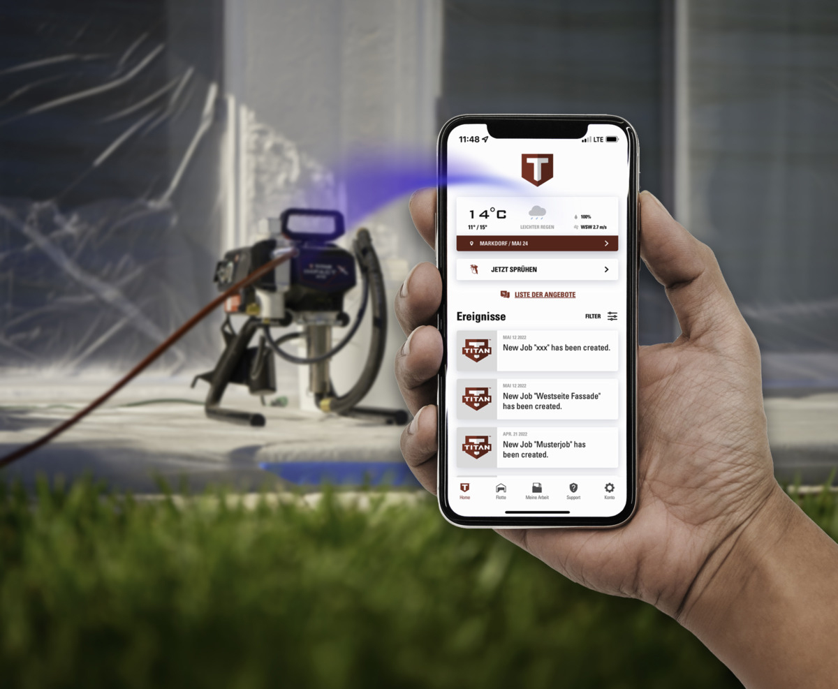 Titan Impact X540i er den første serie af Connectede Airless Sprøjter på markedet. Enheden kan nemt tilsluttes og styres med MyTITAN-appen via Bluetooth . Takket være den digitale støtte kan enheden nemt justeres til det korrekte tryk direkte i MyTITAN-appen