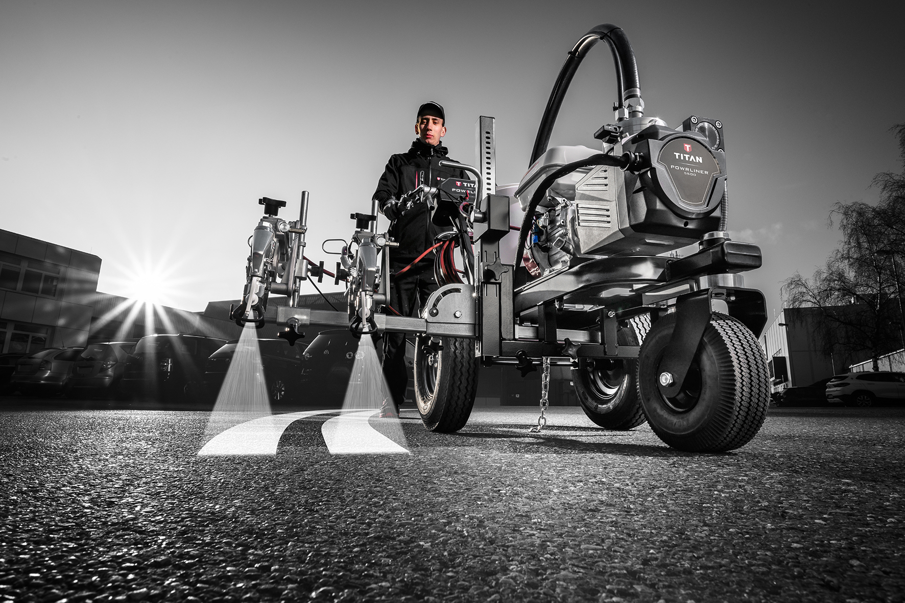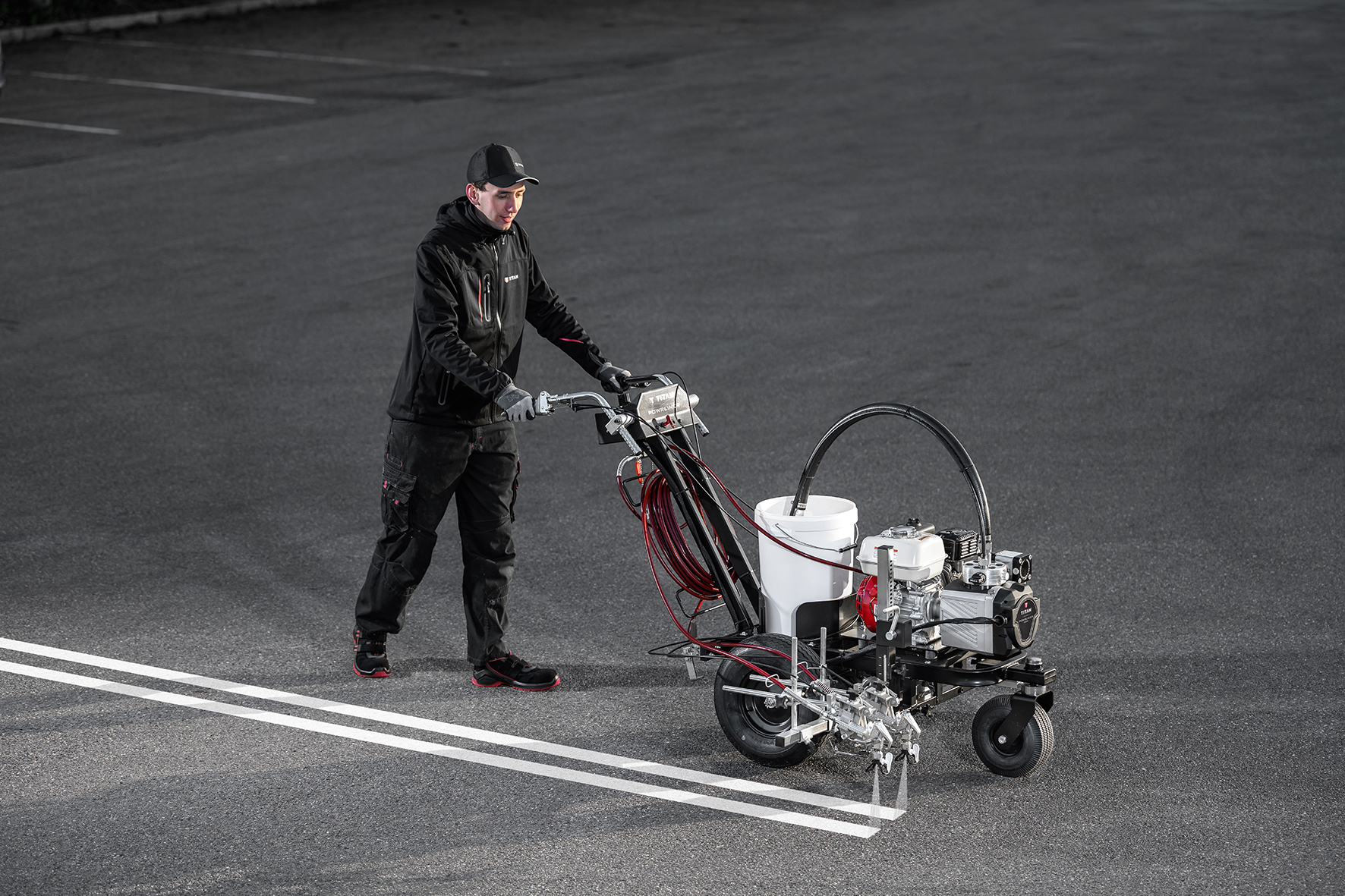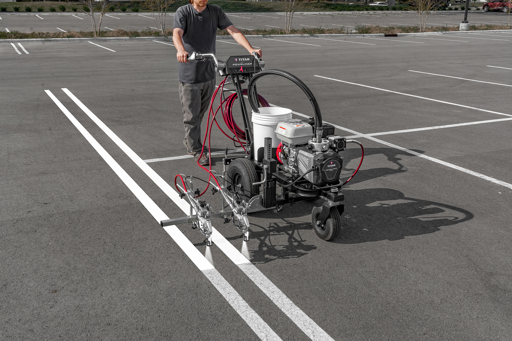 Den revolutionerende PowrLiner™ 5500 er bygget med teknologi, der leverer en førsteklasses streg med skarp og ensartet linjekvalitet, selv på de mest udfordrende overflader.Sprøjter acryl- og oliebaserede malinger til markeringer.PermaStroke Technology™ giver en lang levetid og holdbarhed uden stempler eller pakninger, der skal udskiftes, og kun to sliddele, der kan serviceres ude i markenTætsluttende hydraulisk system uden elektronik eller koblinger, der kan brænde afSureflo™ Pusher Ventil gør det nemt at primesFlatLine Pulsation Dampener™ eliminerer trykudsving i systemetAftagelig sprøjtepistolStore 16" luftgummihjul for øget bærbarhed på ujævne overfladerNy svingbar design