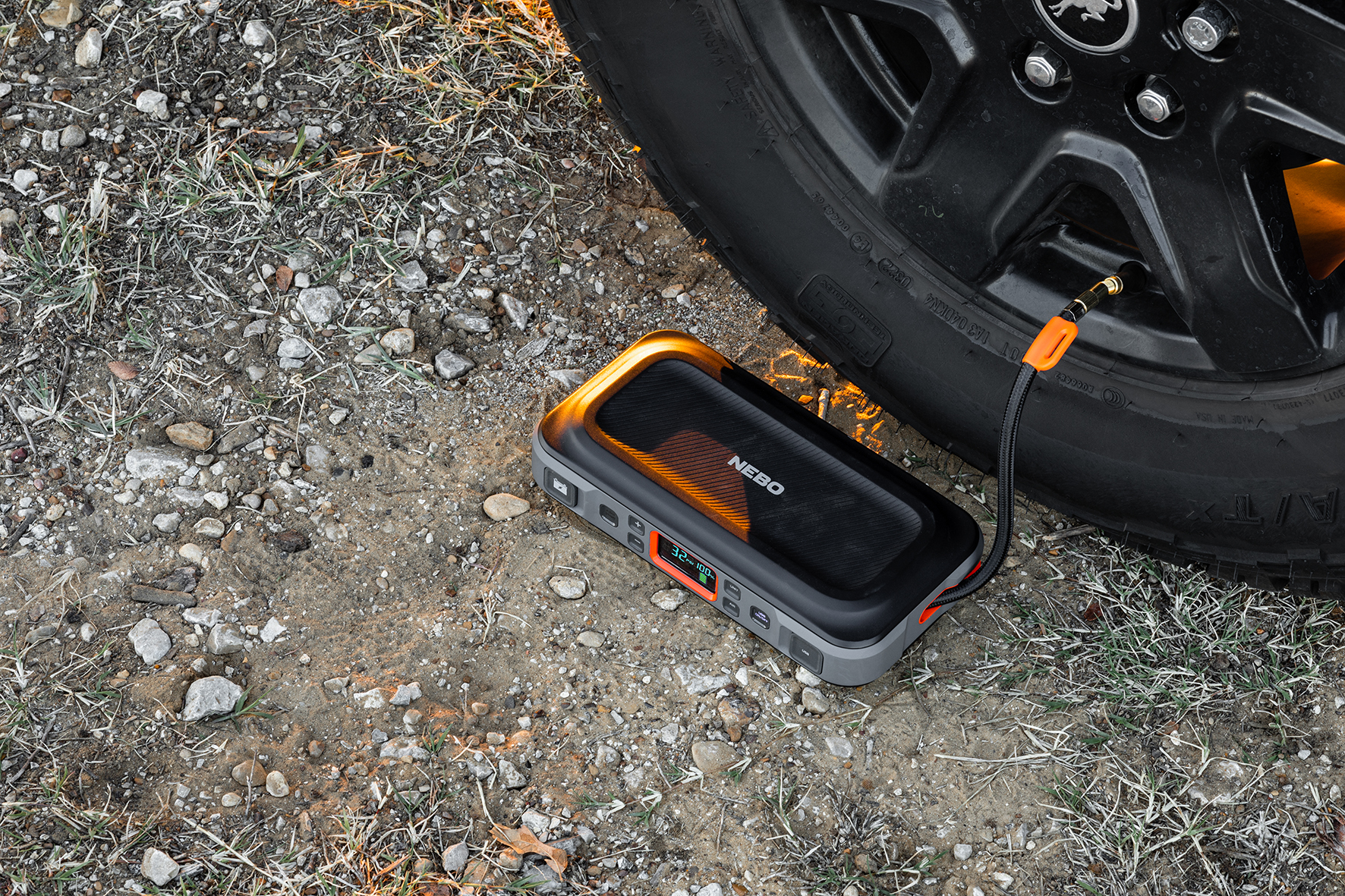 NEBO jumpstarter med startkabler og indbygget kompressor. Jumpstarteren kan endvidere bruges som powerbank. Jumpstarteren er udstyret med 1 x USB-C og 1 x USB-A ladestik, og har et digitaltdisplay for aflæsning af kapacitet mm. Et super produkt til byggeplads, outdoor/campingtur, Mountainbike etc ....