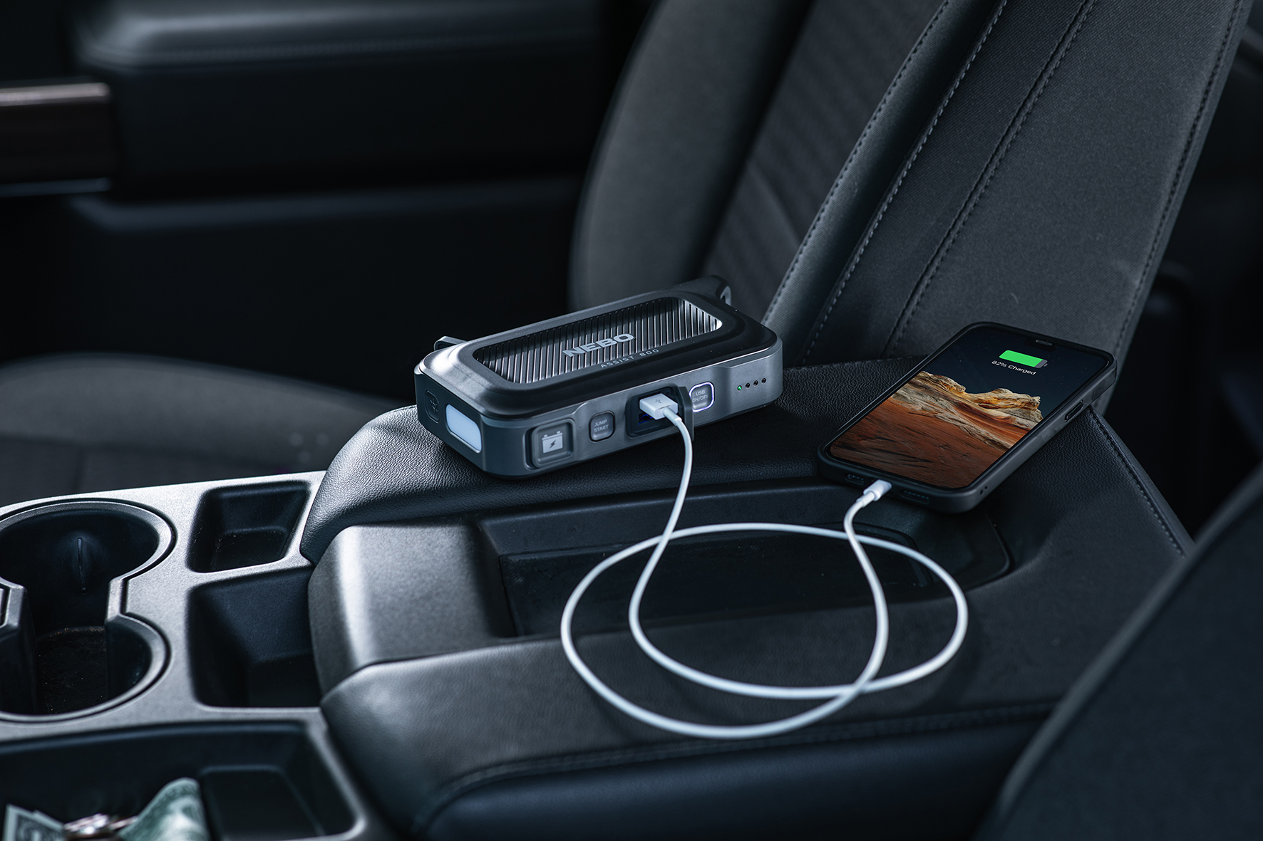 NEBO jumpstarter med startkabler. Jumpstarteren kan endvidere bruges som powerbank. Jumpstarteren er udstyret med 1 x USB-C og 1 x USB-A ladestik. En handy lille jumpstarter/powerbank, som kan klare de fleste opgaver.