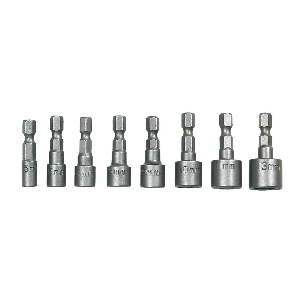 TOPEX bitstoppe med 1/4" sekskant fatning. Sættet indeholder 8 sekskantede toppe i størrelserne 5 - 13 mm. Alle komponenter lavet af slidstærkt kromvanadiumstål, hvilket sikrer en lang levetid.