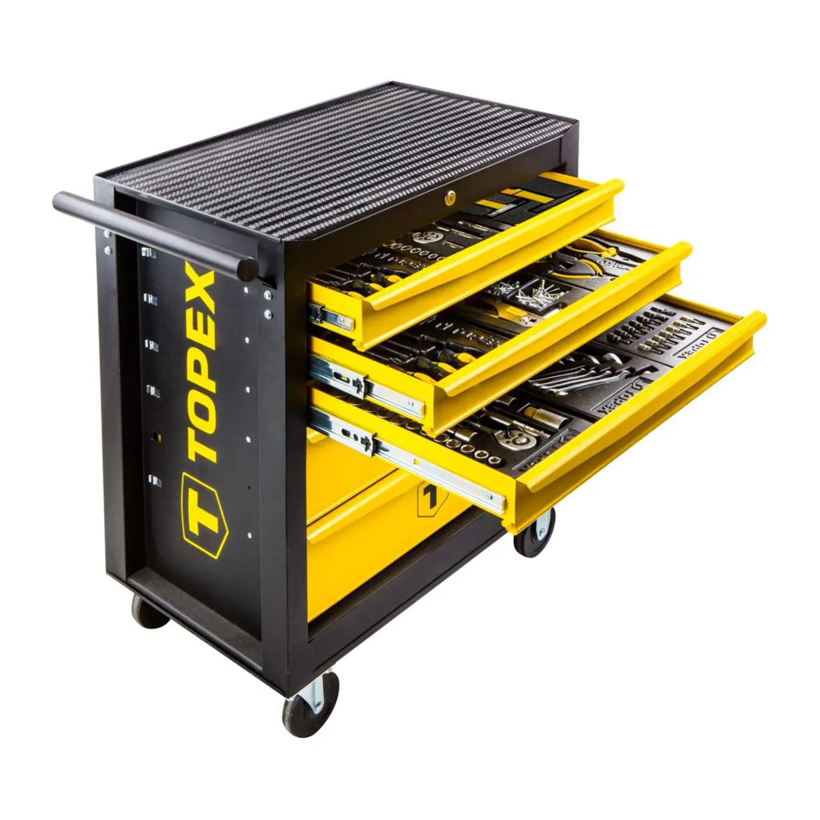 Værkstedsvognen bliver leveret med 105 stk værktøj og 350 tilbehørsdele.Følgende 9 indsatser leveres med:- Topnøgle 1/4" med skralde forlængere og toppe- Topnøgle 1/2" med skralde forlængere og toppe- Stiftnøgler - Almindelige og for topnøgle- Tænger - Spidstang, Fladtang, ind- og udvendig låseringstang og bidetang- Skruetrækkere PH- Skruetrækker Slids- Popnittetang med nitter- Ringgaffelnøglesæt- Bænk- og Plasthammer