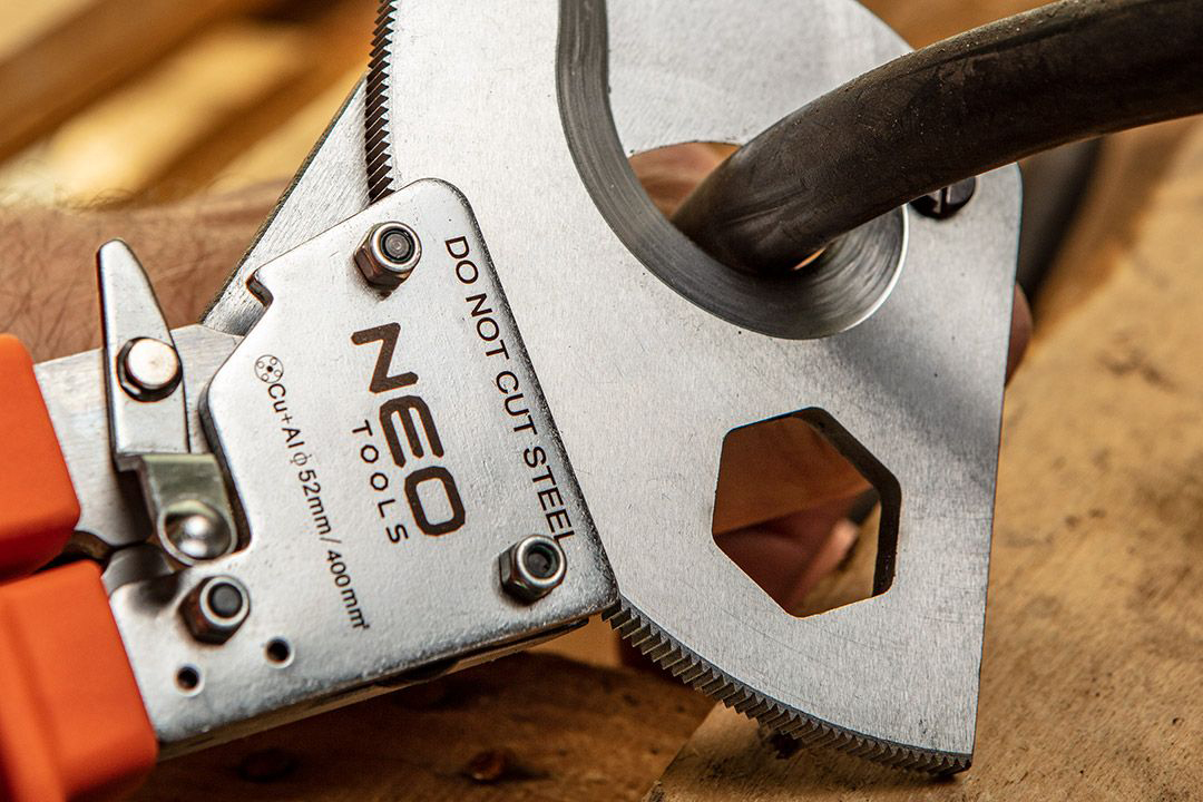 Kobber- og aluminiumskabelskærer er et instrument til overskæring af aluminium- og kobberkabler og ledninger designet til installations- og montagearbejde. Også kendt som skraldesaks på grund af den integrerede skraldemekanisme, der gør det muligt at skære kabler med varierende diametre og trække den bevægelige klinge tilbage på ethvert tidspunkt af arbejdet. Dette gør skæret lettere at håndtere, fordi det kræver minimal kraft at skære kablet over.