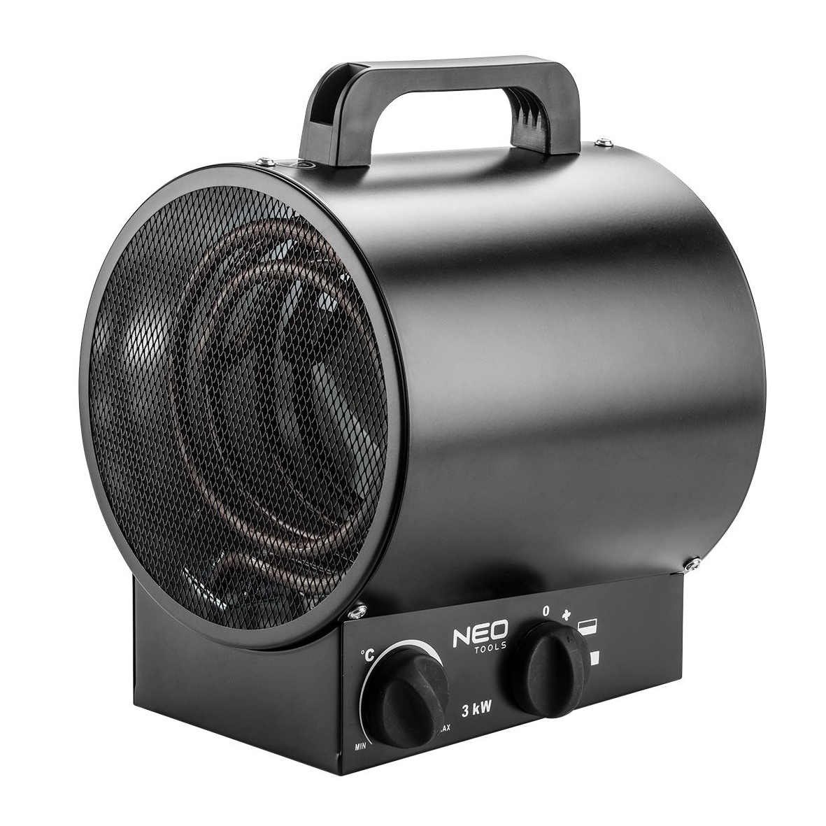 Varmeblæser 90-066 er en bærbar varmekilde, som er designet til at opvarme rum som værksteder, garager, husholdninger og butikker. Enhedens varmeelement er lavet af rustfrit stål, som giver beskyttelse mod overophedning. Dette element og den stærke lufttilførsel sikrer hurtig opvarmning over lang afstand, samtidig med at støjniveauet holdes lavt. Varmelegemet har et isoleret plasthåndtag for nem transport. Det pulverlakerede metalhus beskytter enheden mod rust. Enheden er kendetegnet ved høj effektivitet i en lille størrelse.
