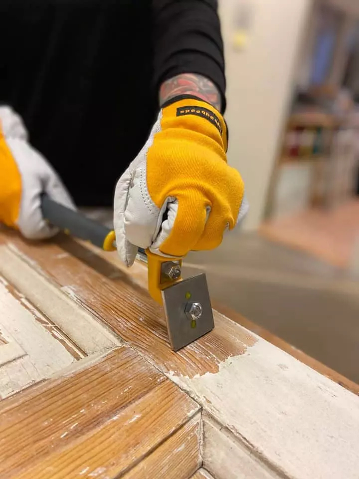 Innovativ malingsskraber med 8 blade, til tør afskrabning af malingDenne skæreskraber er bedst egnet til tørskrabning, og med sine unikke vinkler og ekstra håndtag får du masser af kraft hver gang uden at skulle bekymre dig om at glide og beskadige overfladen.Den 8-skårede skraber er vores seneste tilføjelse til Speedheaters innovative produktfamilie. I modsætning til vores andre skrabere har den hele 8 skarpe kanter, der skal bruges ved fjernelse af maling. Malerskraberen er bedst egnet til tørskrabning og med sine unikke vinkler og ekstra håndtag får du masser af kraft hver gang uden at skulle bekymre dig om at beskadige overfladen.Klingen er vendbar og designet, så du har 8 snit på en og samme klinge. Alle fire sider af klingen har hver to skærekanter, og du kan nemt skifte skæreside ved at dreje og dreje kniven. Det hårde specialstål holder længe, og du kan nemt slibe skæret for at holde kanterne skarpe.