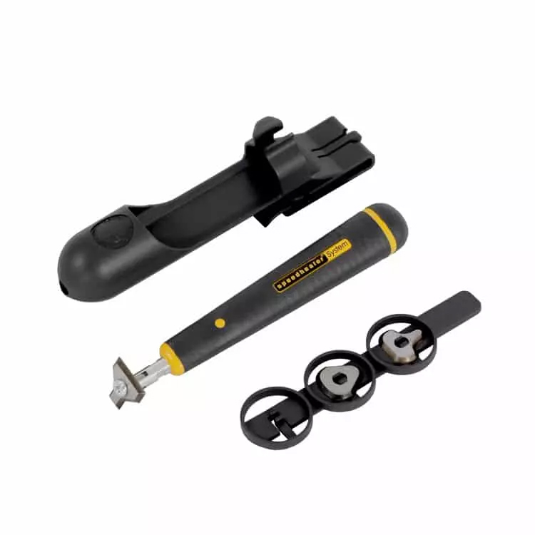 Speedheater Flexi skraber - 6 skrabeprofiler i 1 multiværktøj!En verdensunik patentanmeldt og fleksibel malingsskraber med hele 6 profiler i 1!Vi har talt med mange håndværkere og renovationsarbejdere gennem årene, og efterspørgslen efter en malerskraber, der både er fleksibel og nem at bruge, har altid været meget stor. De største ønsker var adgang til mange skrabeprofiler i samme værktøj, minimering af arbejdet med at skulle samle skraberblade igen og et fleksibelt enhåndsværktøj for at øge effektiviteten. Speedheater Flexiskraper er unik og topper alle malingsskrabere på markedet!Af alle de ting, der gør Speedheater Flexi Skraper unik, er en af de vigtigste den fleksible klingefastgørelse, der blot omvinkler med et let tryk og dermed gør det nemt at bruge alle sider af skraberbladet uden at skulle samle skærene igen. . Med vores fleksible malingsskraber tager det kun få sekunder at skifte profil! Skraberen har to faste positioner med en optimal vinkel for effektivt og ergonomisk arbejde. Vinklen skaber en bedre arbejdsvinkel og gør det nemt at komme til trange pladser. Perfekt til vinduesrenovering og detaljerede mindre paneler. Håndtaget er let, let at gribe og behageligt at holde.Skrabebladene samles i et bladmagasin, der er fastgjort til båndet for altid at være tilgængeligt. Bladmagasinet foldes ud fra hylsteret og kan frakobles eller ligge sikkert på bagsiden af kufferten under arbejdet. De tre fræsere har i alt seks forskellige profiler og er udført i højeste kvalitet med en unik stålsammensætning, der kan slibes for at sikre længst mulig holdbarhed. Hylstret er fastgjort til bæltet og muliggør et enhåndsgreb for effektivt at forenkle arbejdet.Dette omfatter:1 stk Flexi skraberMalerskraber med grebsvenlig og ergonomisk designet letvægtshåndtag med en unik fleksibel vinkelløsning og to faste positioner. Mulighed for at arbejde med alle sider af indsatsen uden at skulle samle klingen igen!3 skrabearkTre forskellige skraberblade med i alt 6 forskellige profiler. Skrabebladene e